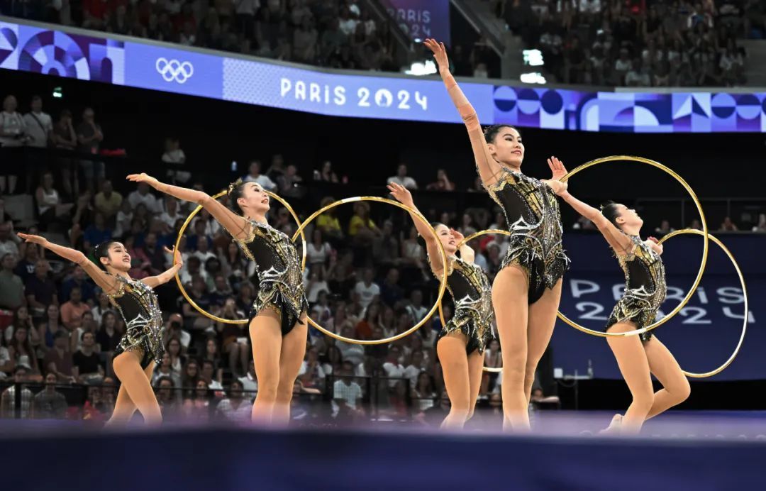 威风铿锵,霓裳轻摆,中国军团再次迎来历史性突破。在北京时间8月10日晚进行的巴黎奥运会艺术体操团体全能决赛中,由上海选手郭崎琪担纲队长的中国队以总分69.800分勇夺金牌。这是中国艺术体操队首次问鼎奥运会冠军,也是刚刚度过26岁生日的郭崎琪的最好生日礼物。
