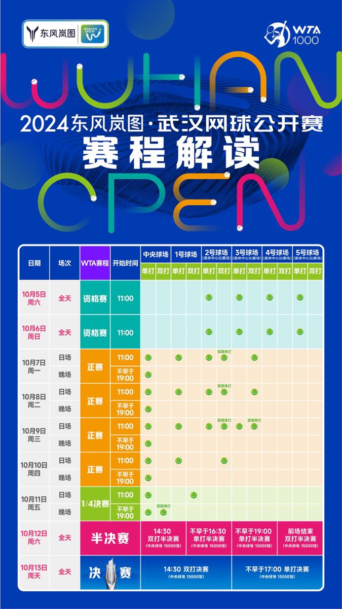 8月20日,2024武汉网球公开赛在湖北武汉民众乐园开票。时隔四年,武汉网球公开赛即将于武汉光谷国际网球中心焕新开赛。今年武网赛期为10月5日至10月13日,其中前两日为资格赛,后7日为正赛,比赛场次多达106场。