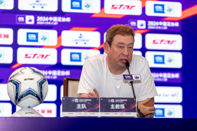 斯路茨基出席赛前发布会。足协杯官方图