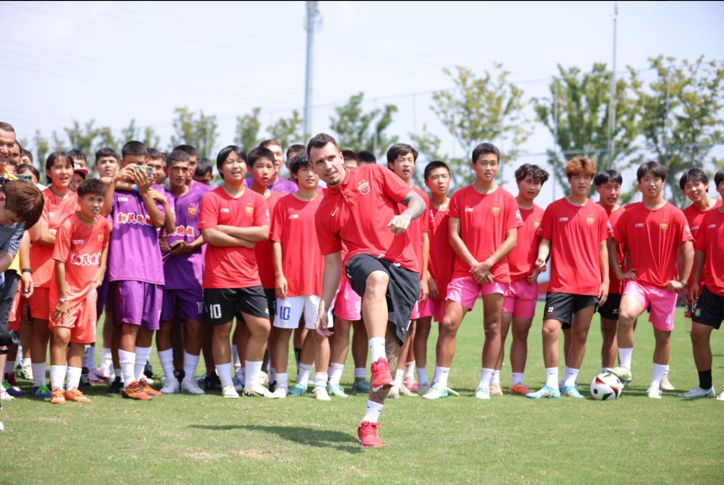 紧随新民训练营后,“球星面对面”活动点燃了现场的活动气氛,海港一线队队员蔡慧康以及俱乐部在二次转会窗口新签下的巴西外援威廉·波普惊喜亮相,与现场小球员们零距离互动。