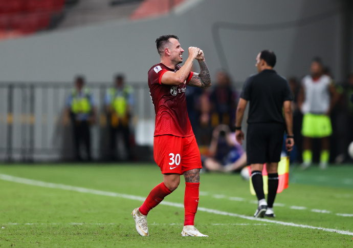 头图为古斯塔沃庆祝进球。海港俱乐部图