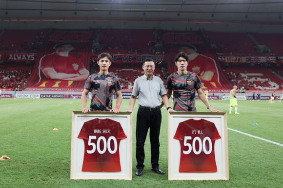 王燊超和吕文君两位老将都已经代表海港出战各项比赛500场。海港俱乐部图