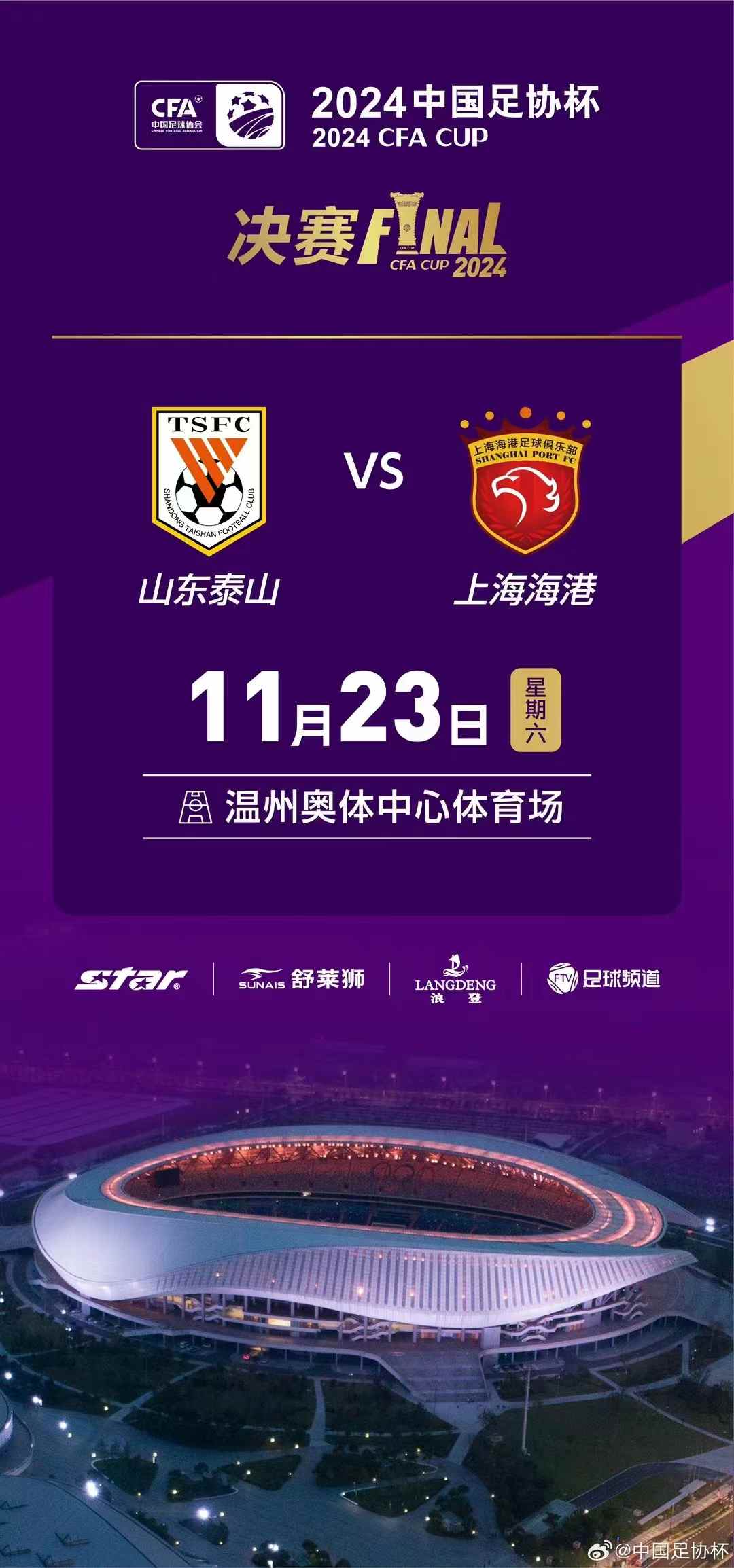 11月23日,上海海港将与山东泰山争夺冠军。在此前的半决赛上,上海海港以3比2击败上海申花,山东泰山则是以1比0绝杀成都蓉城。本场比赛的开球时间尚未最终敲定。