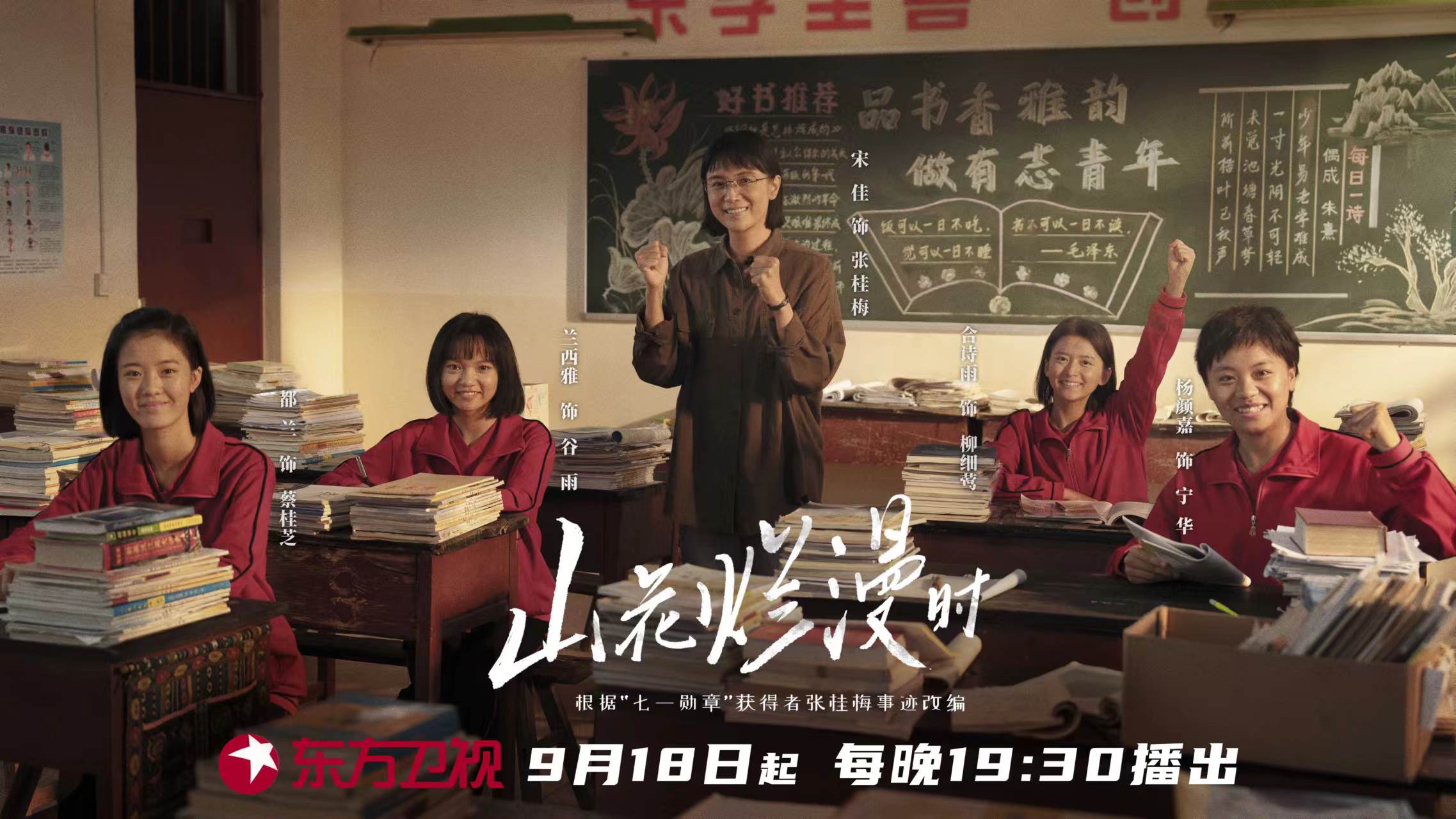 9月30日、10月1日,东方卫视频道每晚19:30播出乡村振兴教育主题电视剧《山花烂漫时》,由宋佳领衔主演。该剧根据七一勋章获得者、时代楷模、丽江华坪女子高中张桂梅校长的真实事迹改编。