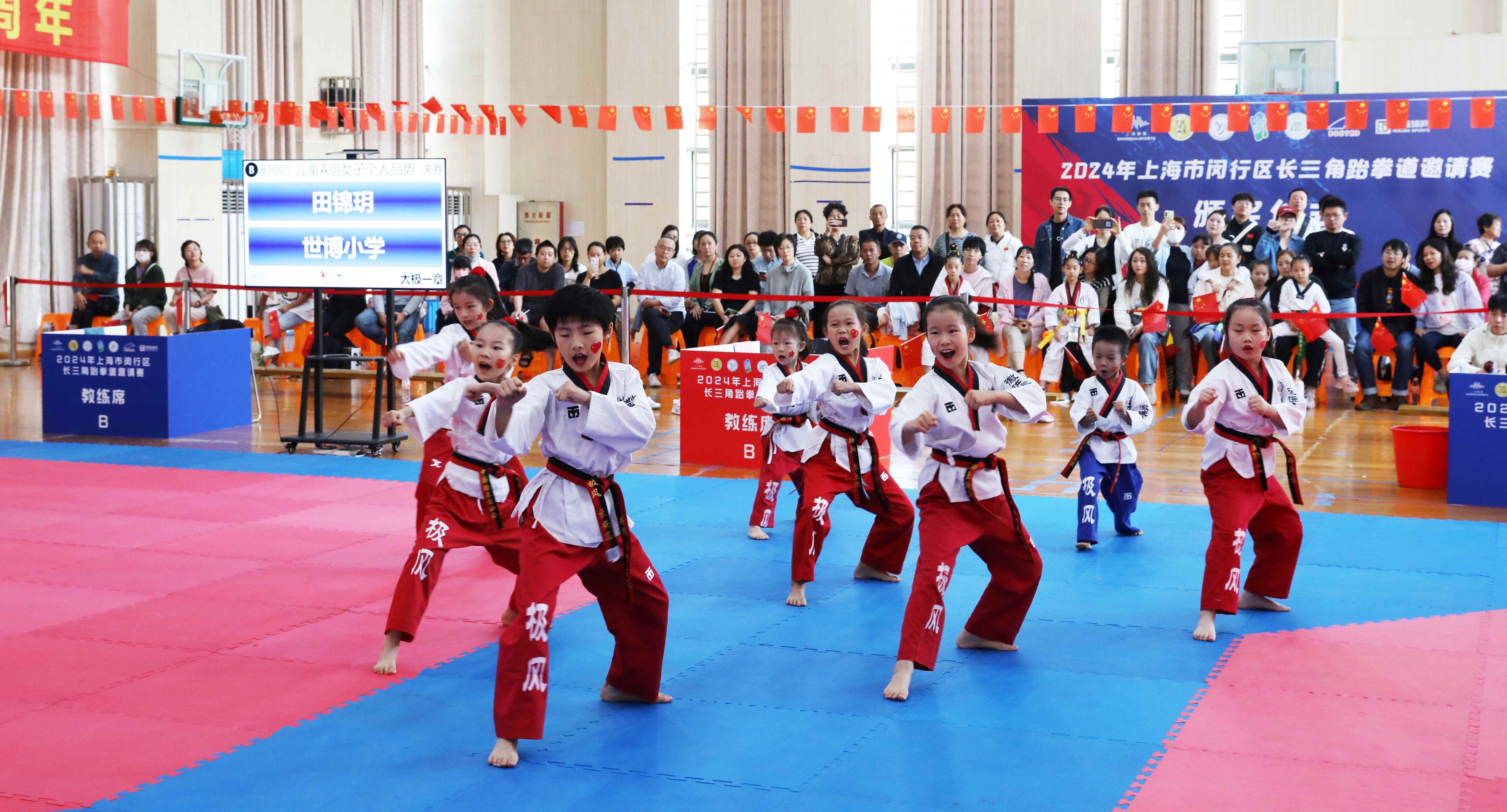 10月1日至3日,来自上海、江苏、浙江和安徽的20支代表队、近300名青少儿跆拳道选手齐聚闵行区黄浦一中心世博小学体育馆,以第四届长三角跆拳道邀请赛为载体,切磋技艺,挥洒汗水,共庆新中国75周年华诞。