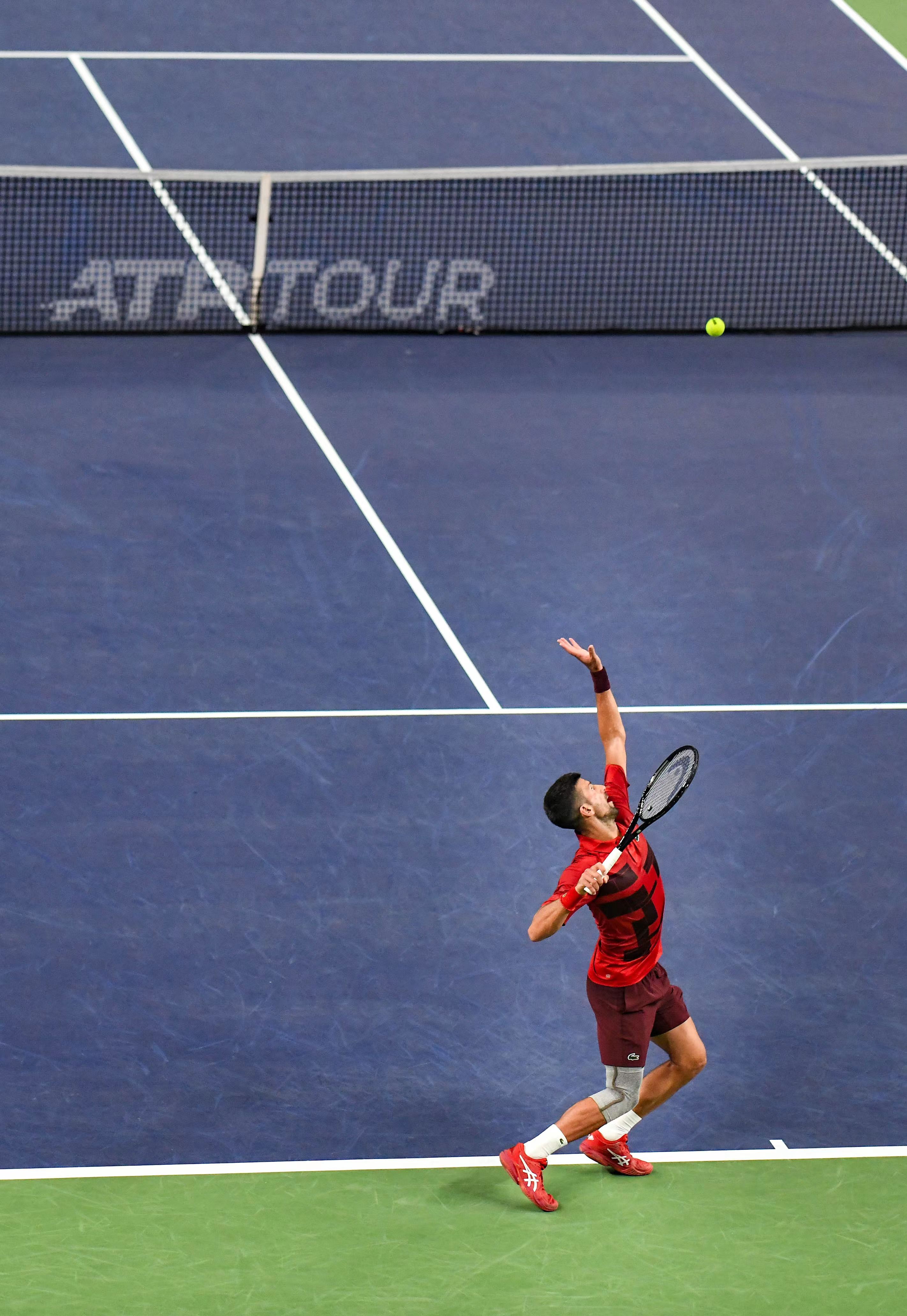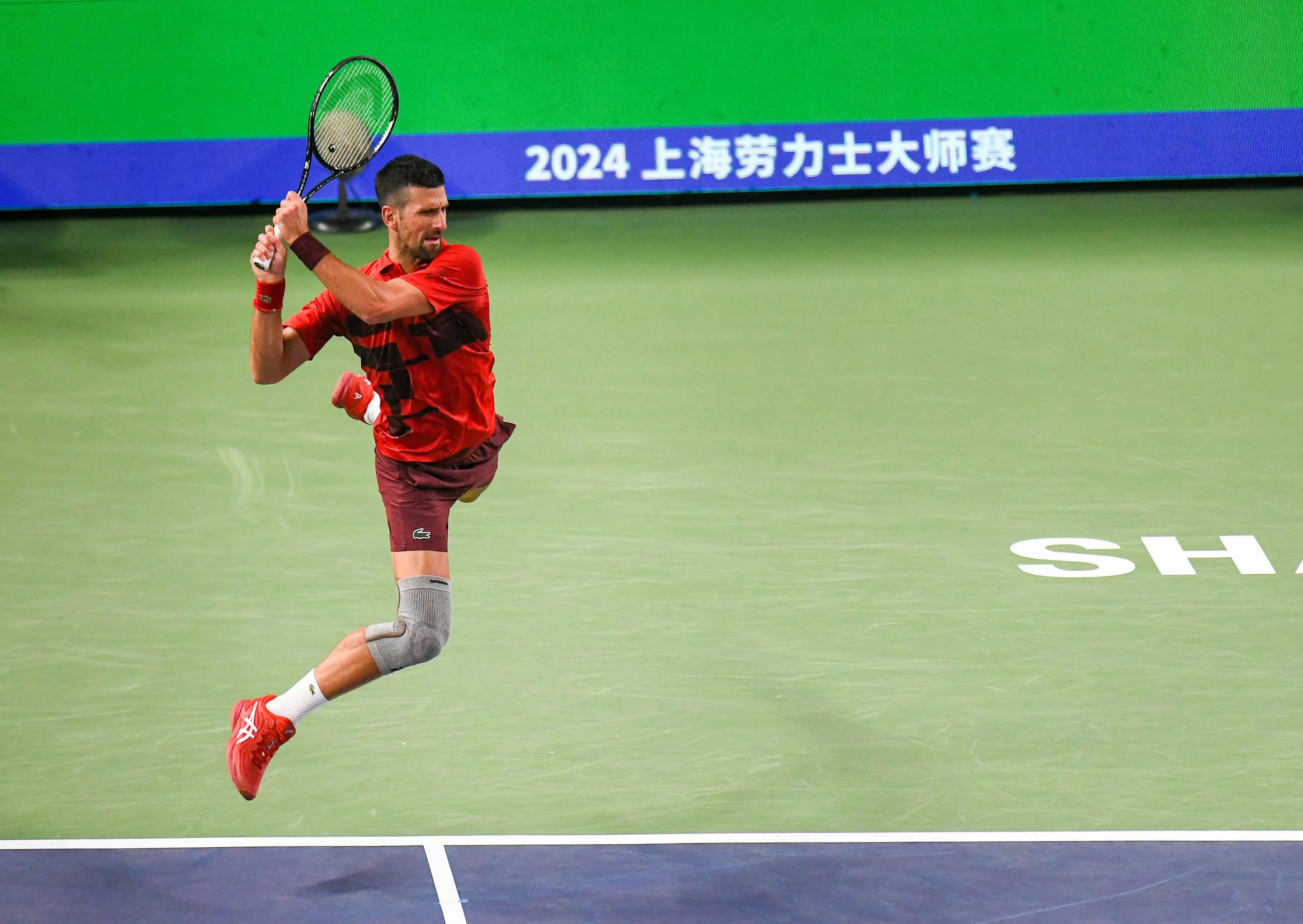 德约飞起来击球。劳动报记者颜筱依 摄影