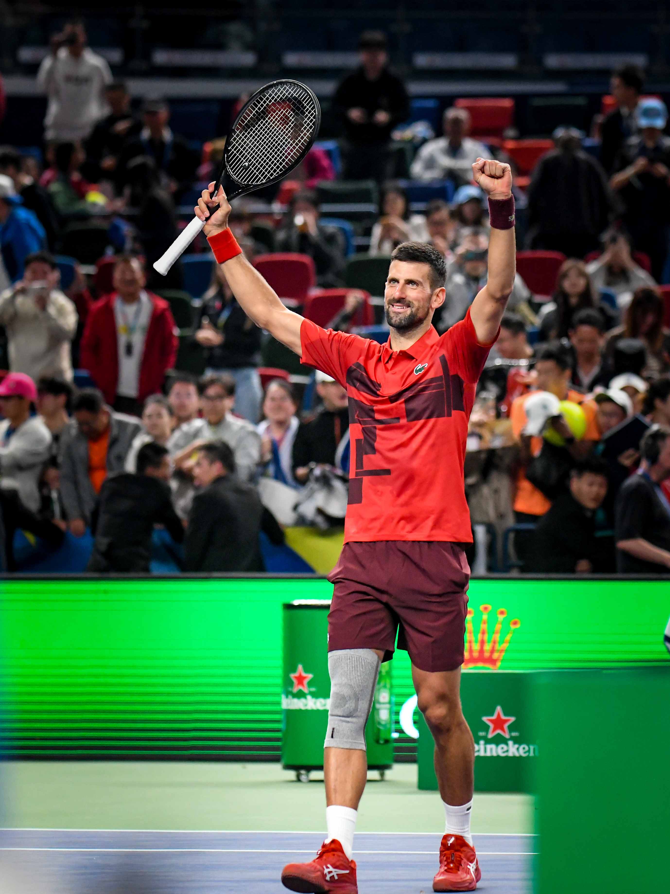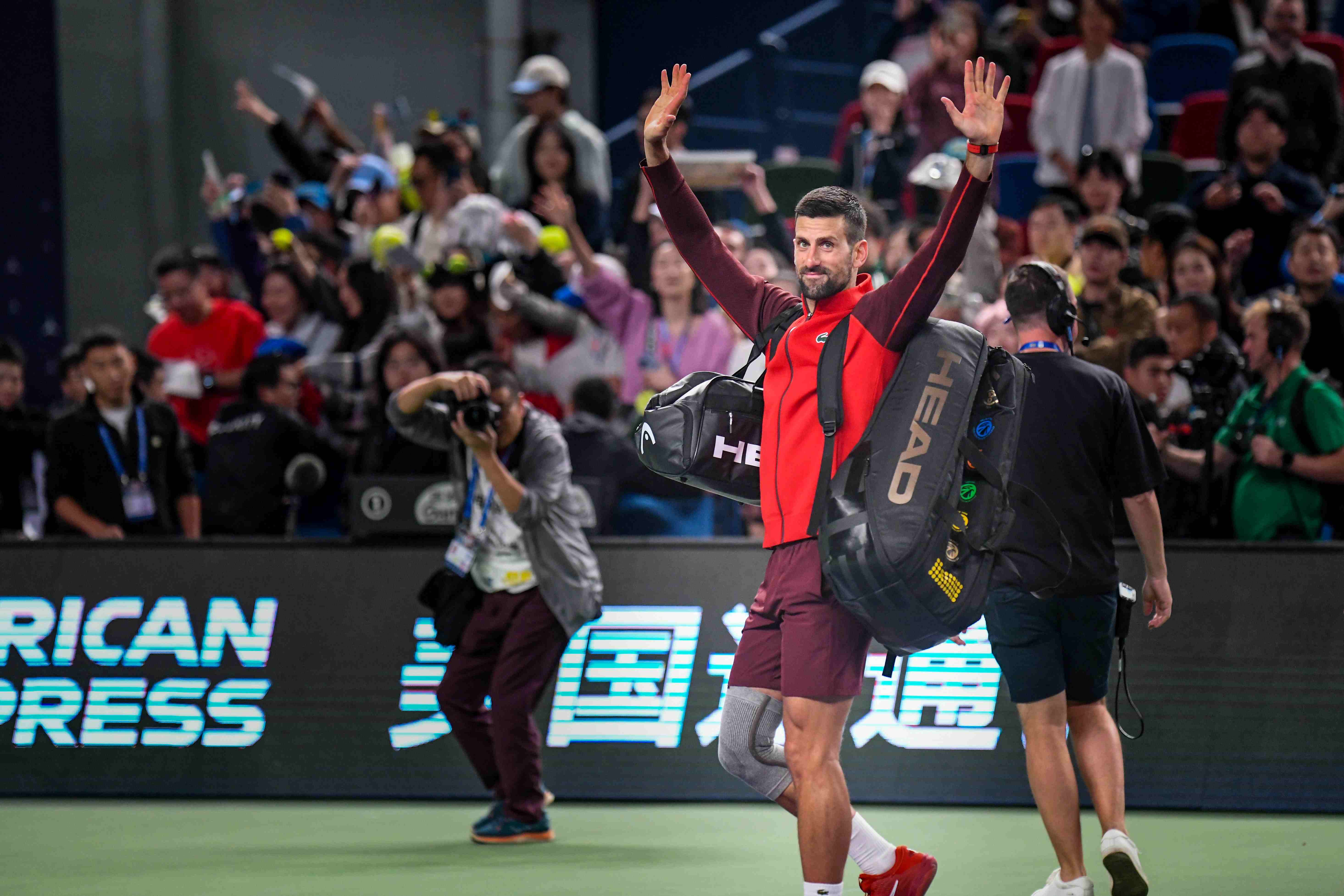 德约向观众致意。劳动报记者颜筱依 摄影