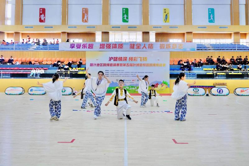 宽敞明亮的叶城体育馆内,450余名学生摆动着手中的绳子尽情跃动,青春的活力张扬四射。日前,喀什地区跳绳邀请赛暨第五届叶城县校园跳绳挑战赛落幕,上海体育人为期10天的润疆之旅也进入了尾声。送人才、办赛事,短暂的交流将一颗来自申城的体育种子播撒在新疆青少年的心中,一根小小的跳绳也连接了沪喀两地的深厚情谊。