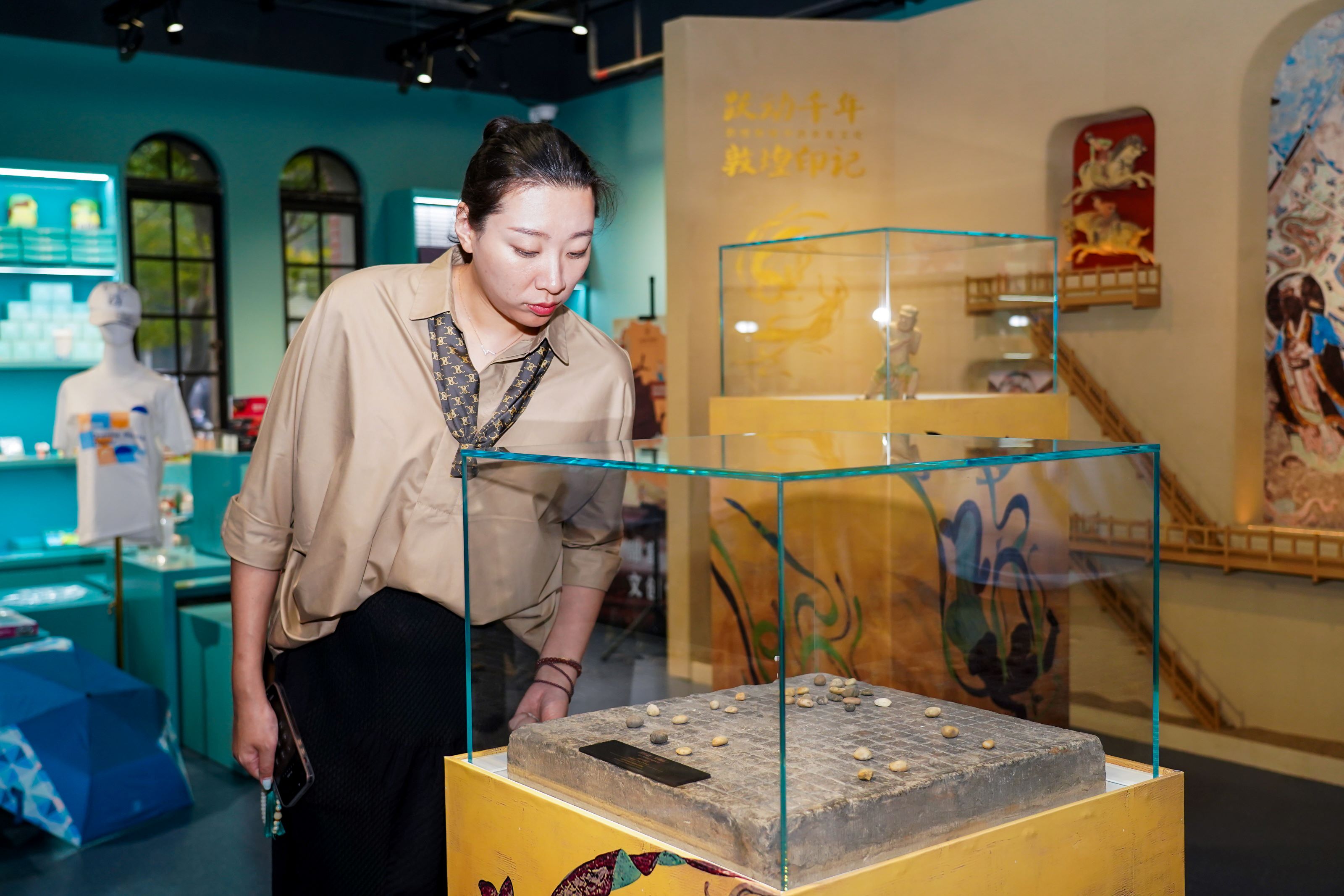 在上海,看敦煌。处于河西走廊西端的敦煌文化是中华传统文化的一张亮眼名片,上海体育博物馆“跃动千年 敦煌印记”敦煌壁画中的体育文化主题展分为“彩墨嬉戏|敦煌壁画中的游戏娱乐”、“竞强斗胜|敦煌壁画中的竞技对垒”和“洗濯磨淬|敦煌壁画中的保健养生”3个单元,以文物、壁画、模型造景和多媒体结合的形式,集中展现了敦煌文化中弓射、马术、武艺、球类等20余项传统体育游艺活动的生动景象,带领观众沉浸式感受以敦煌文化为代表的中国传统体育文化的魅力。