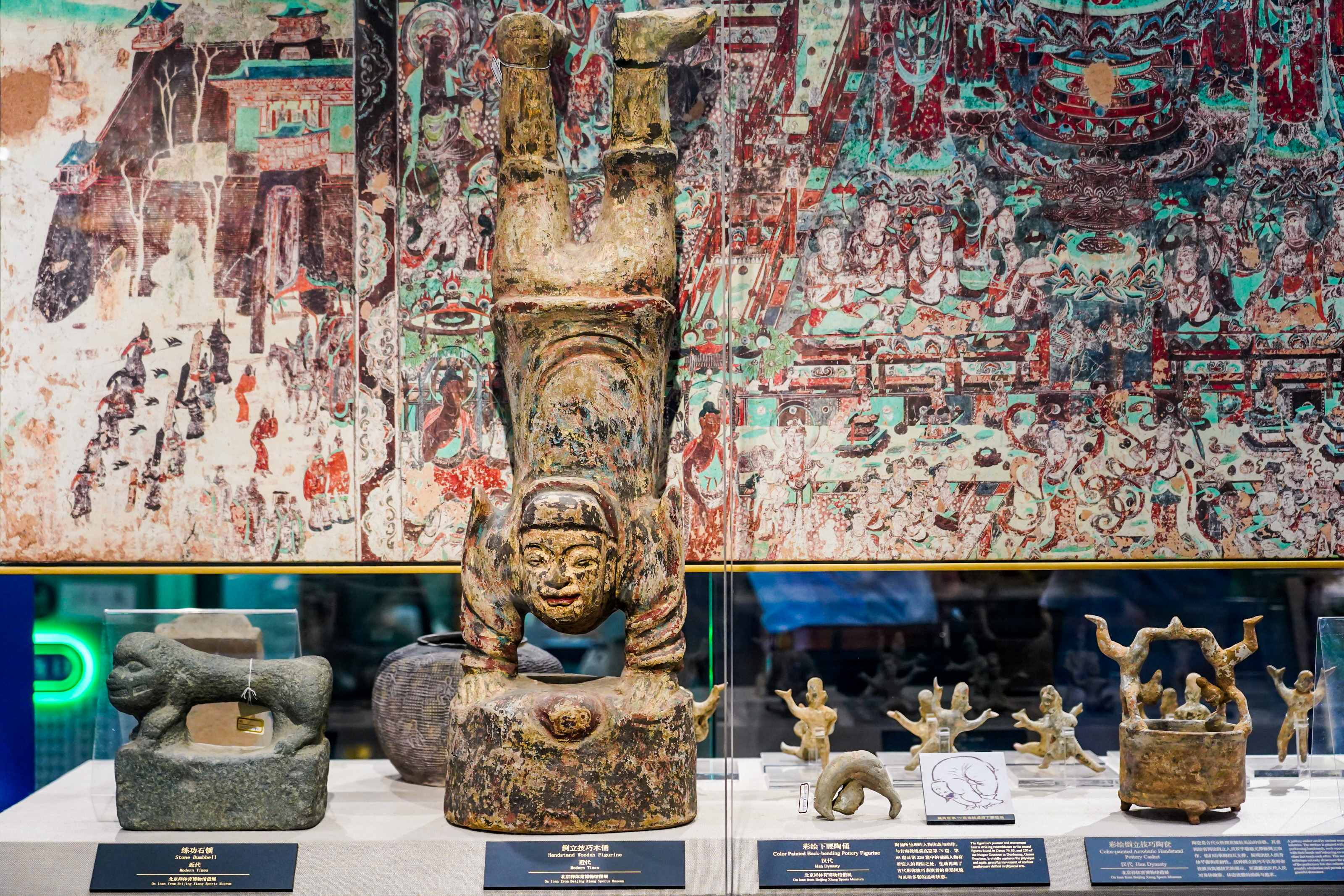 本次主题展历时半年策划筹备,得到了敦煌研究院、山西省体育博物馆和北京祥体育博物馆等专业院馆的大力支持。从敦煌研究院复刻的27幅体育主题的敦煌壁画,以及山西省体育博物馆和北京祥体育博物馆无偿借展的早期体育主题藏品39套,聚焦敦煌壁画的惊艳表达,辅以实物藏品的丰富印证,各方合力践行“以文化人 以体育人”理念,坚守文化自信自强,为上海加快建设具有世界影响力的社会主义现代化国际大都市贡献体育文化的力量。