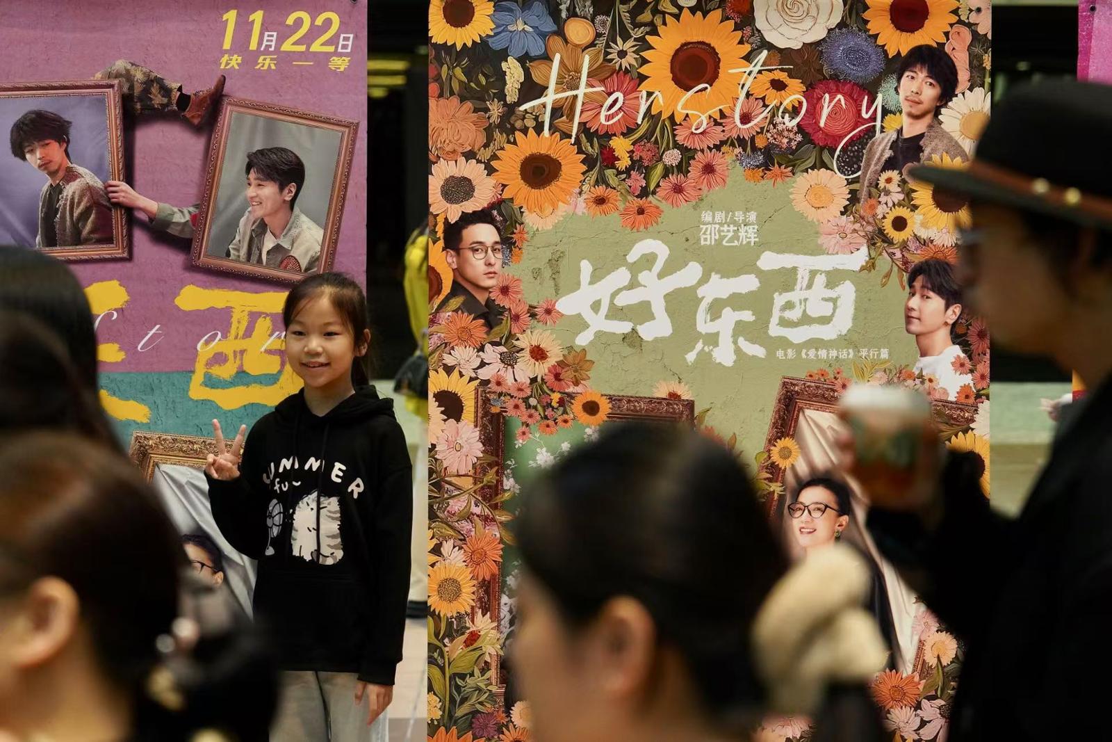 上海商城剧场外,不少观众排队与电影《好东西》海报打卡。劳动报记者贡俊祺 摄影