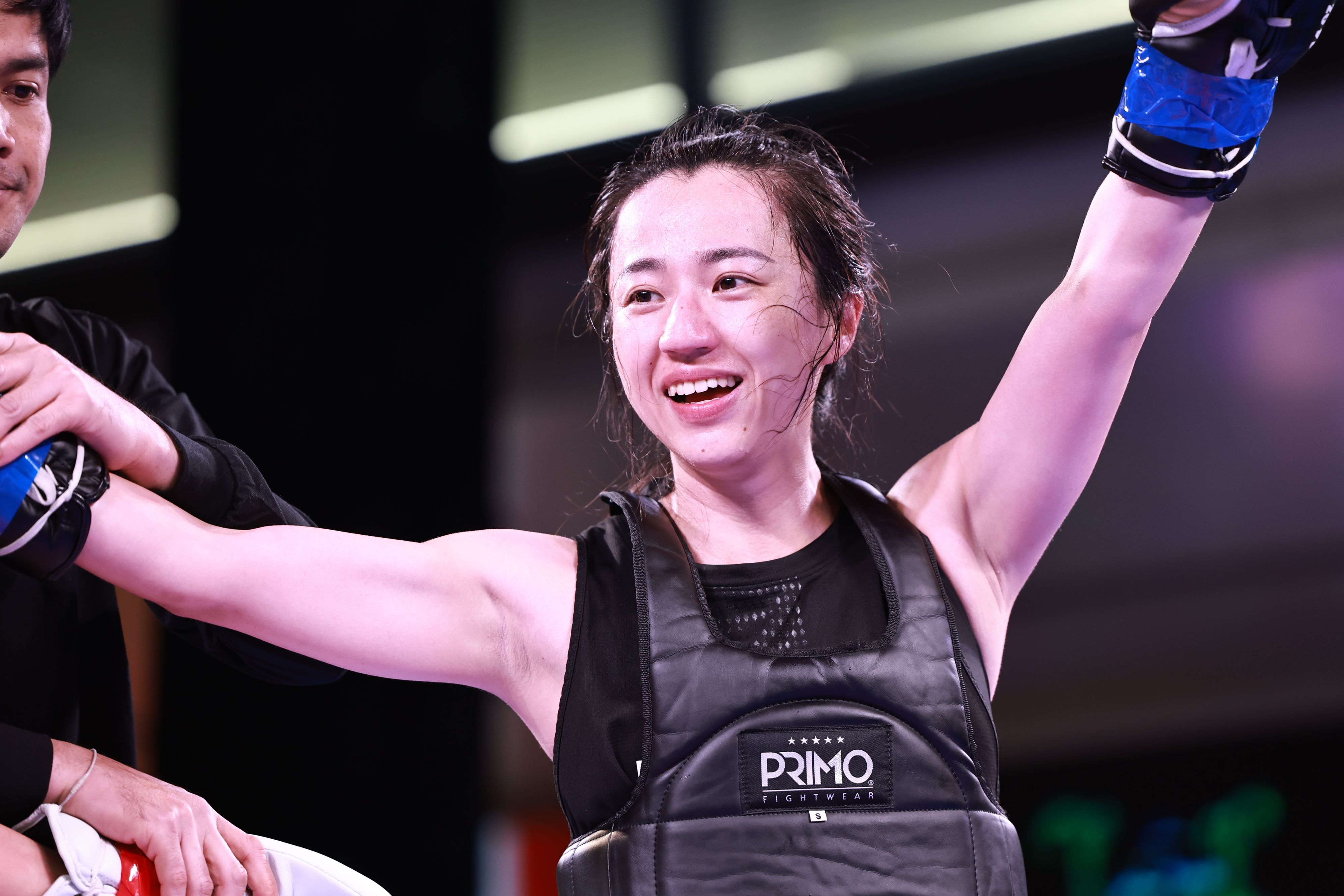 像贾玲一样热辣滚烫,一位女拳手庆祝胜利。主办方图