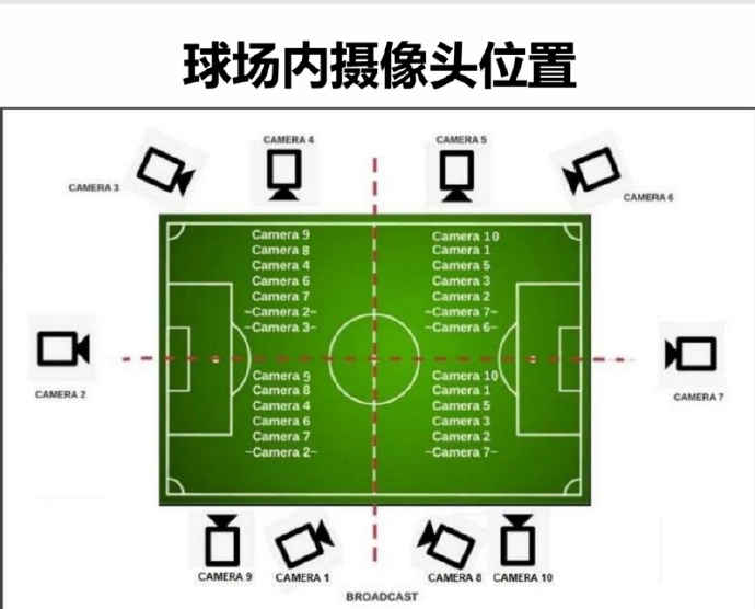 半自动越位识别技术的摄影机位分布。中国足协图