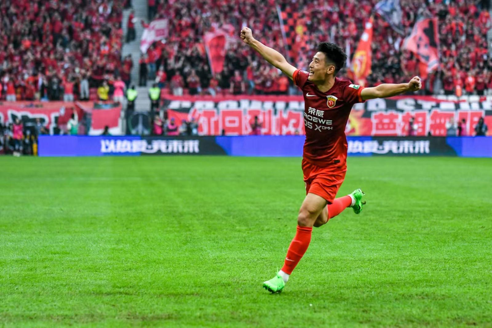 武磊在联赛最后一轮庆祝进球。劳动报记者颜筱依 摄影