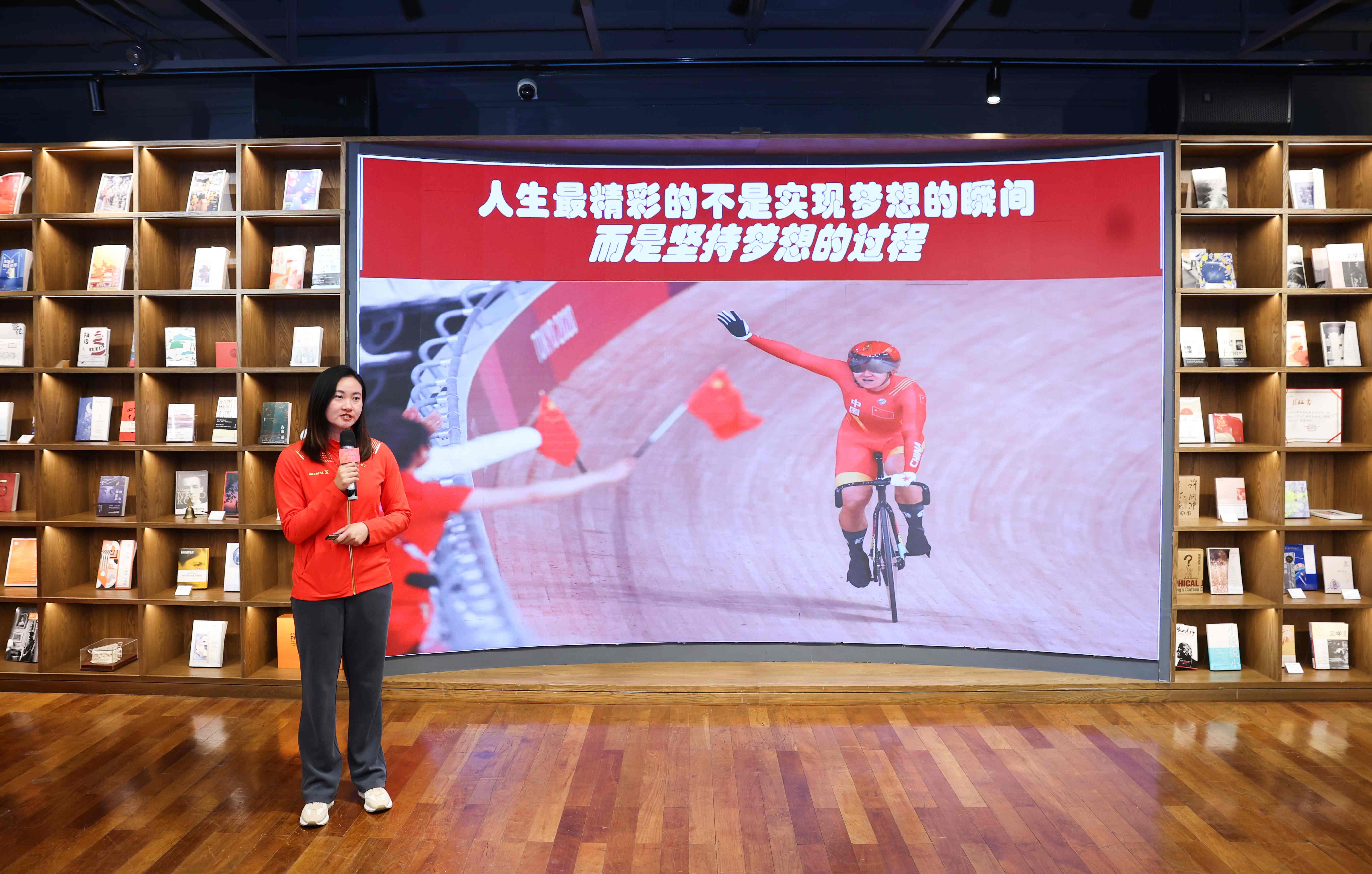 活动现场,场地自行车奥运冠军钟天使,在冠军励志讲堂中以自己的成长经历以及在面对困难时的坚持,诠释了榜样的力量,传递体育拼搏精神。