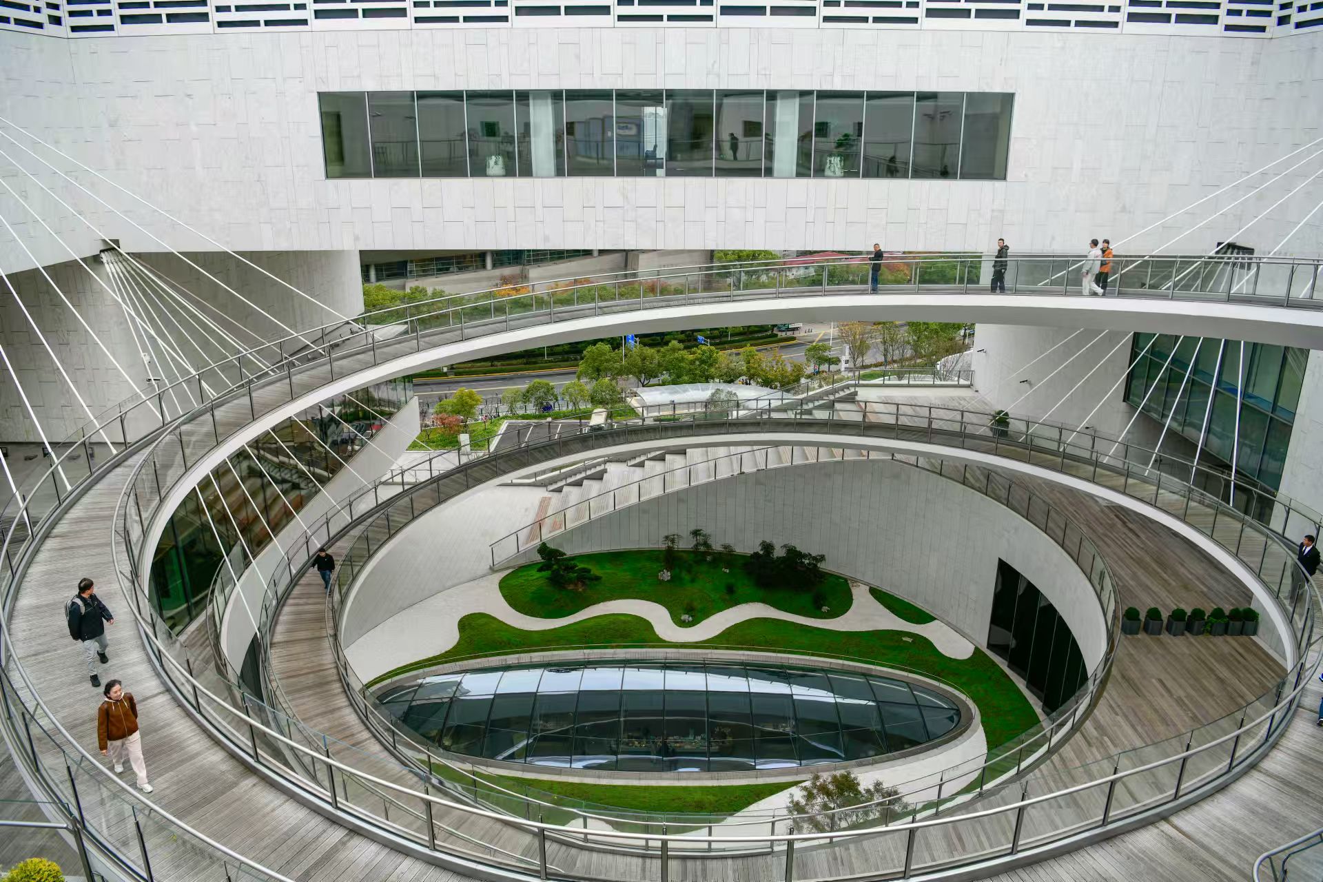 螺旋形的环形坡道连接起了三、四、五层的室内空间,实现了建筑空间与城市空间的互动。劳动报记者 颜筱依 摄影