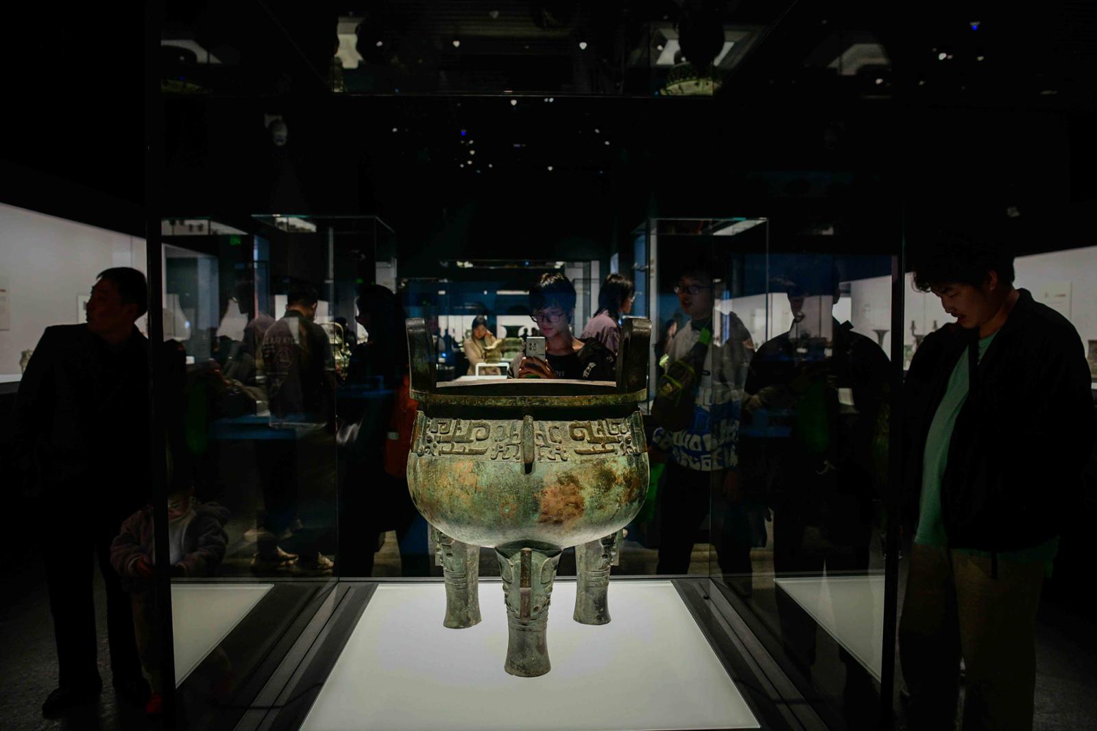 观众参观青铜馆。劳动报记者 颜筱依 摄影