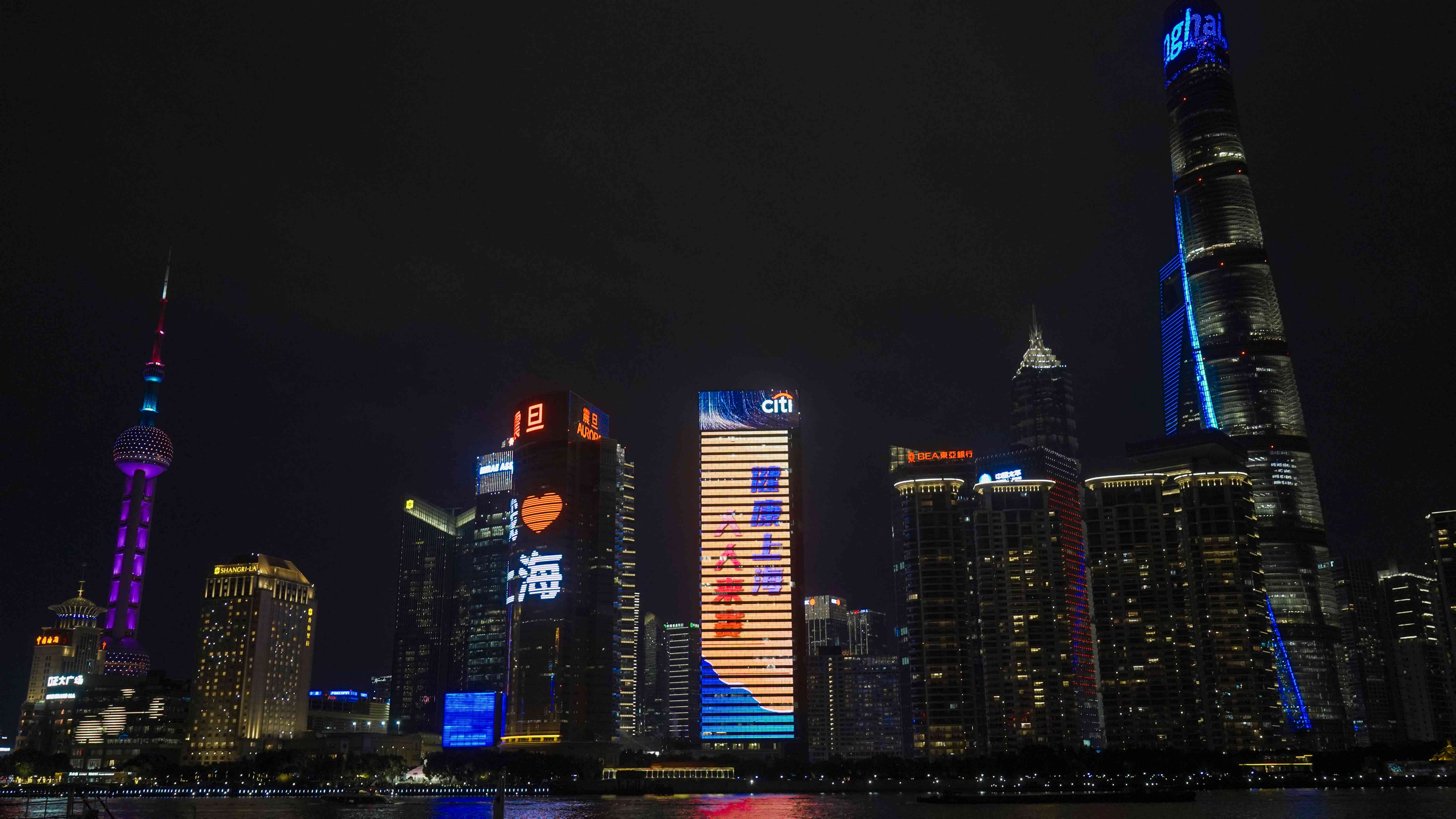 花旗大厦为市民运动会闭幕亮灯。上海体育图