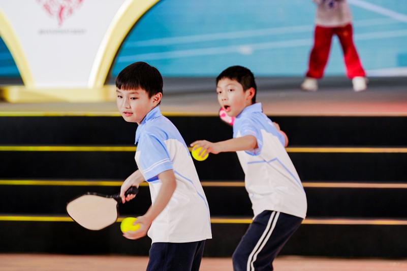 小朋友在闭幕式上展示匹克球。上海体育