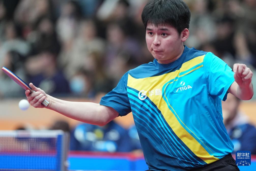 王楚钦在比赛中。新华社图