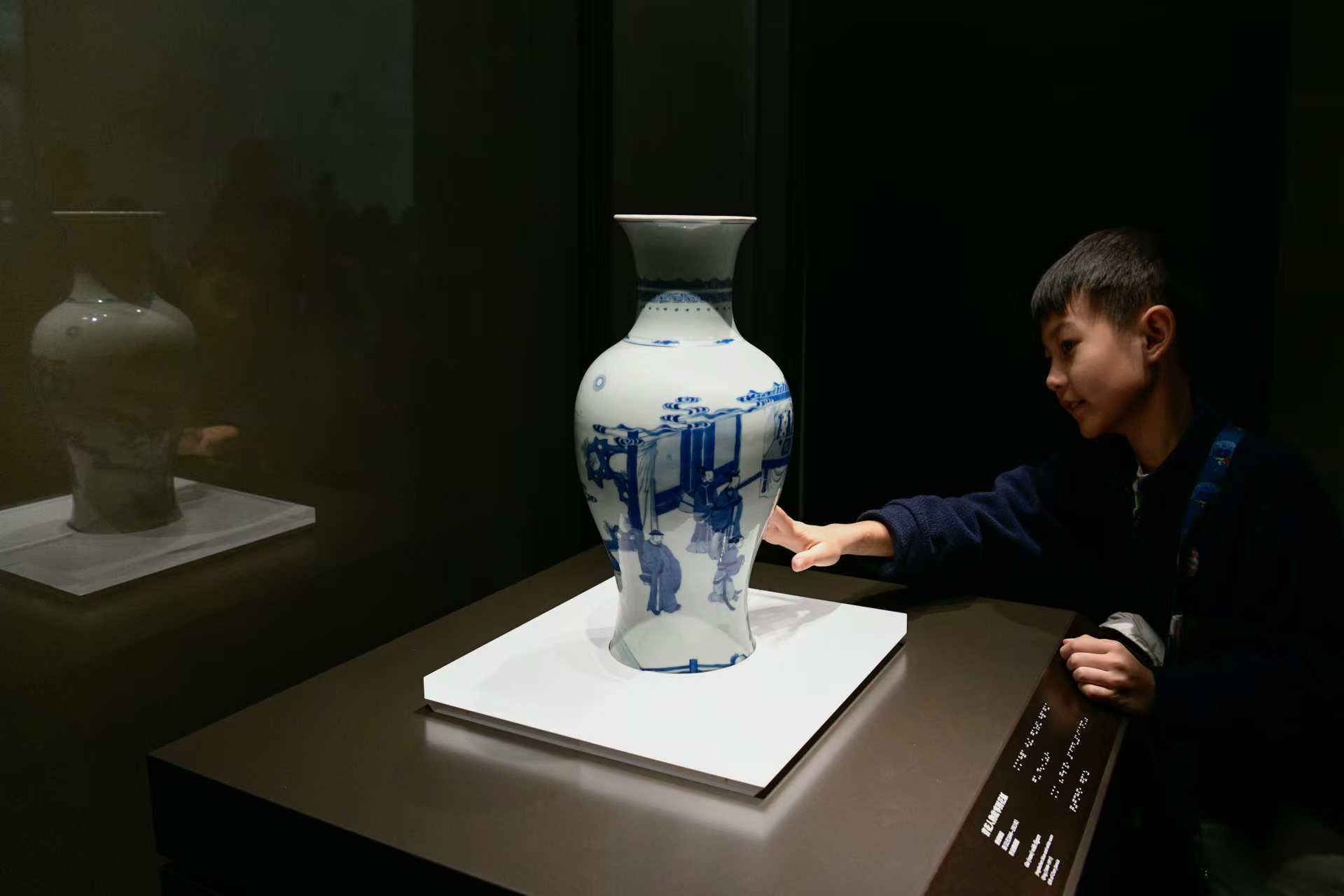 经过专业评估和特殊保护处理,在确保安全和完善相关举措的前提下,允许观众触摸一件清代康熙时期釉下彩青花瓷瓶,开创了国内同类展览的先河。劳动报记者颜筱依 摄