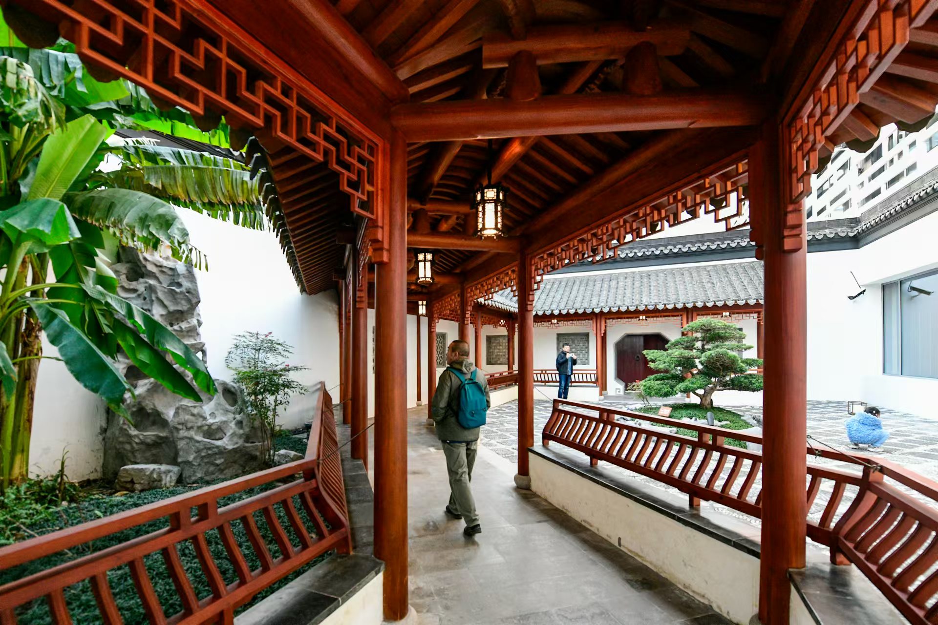 为了缓解观众在特大型博物馆中的观展疲劳问题,建筑改变常见的封闭式流线设计,在流线不同位置设置敞开式的休闲边厅以及室外露台和花园,强调建筑空间与城市空间的交流互动。劳动报记者颜筱依 摄