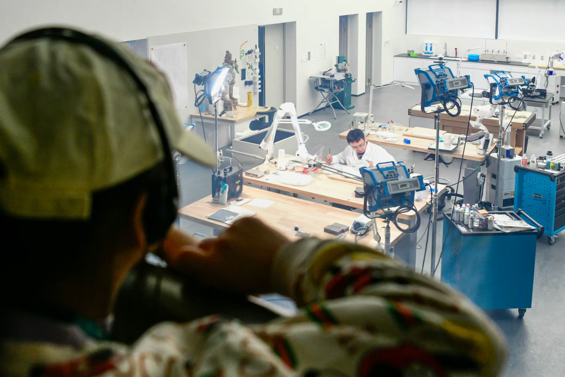 上博东馆四层,有一个特别设置的“文物保护修复体验馆”,观众可以通过单向玻璃观察文物修复师们对文物进行修复工作,也可以结合主题陈列更好地理解文物修复的原因、工具、步骤等知识。劳动报记者颜筱依 摄