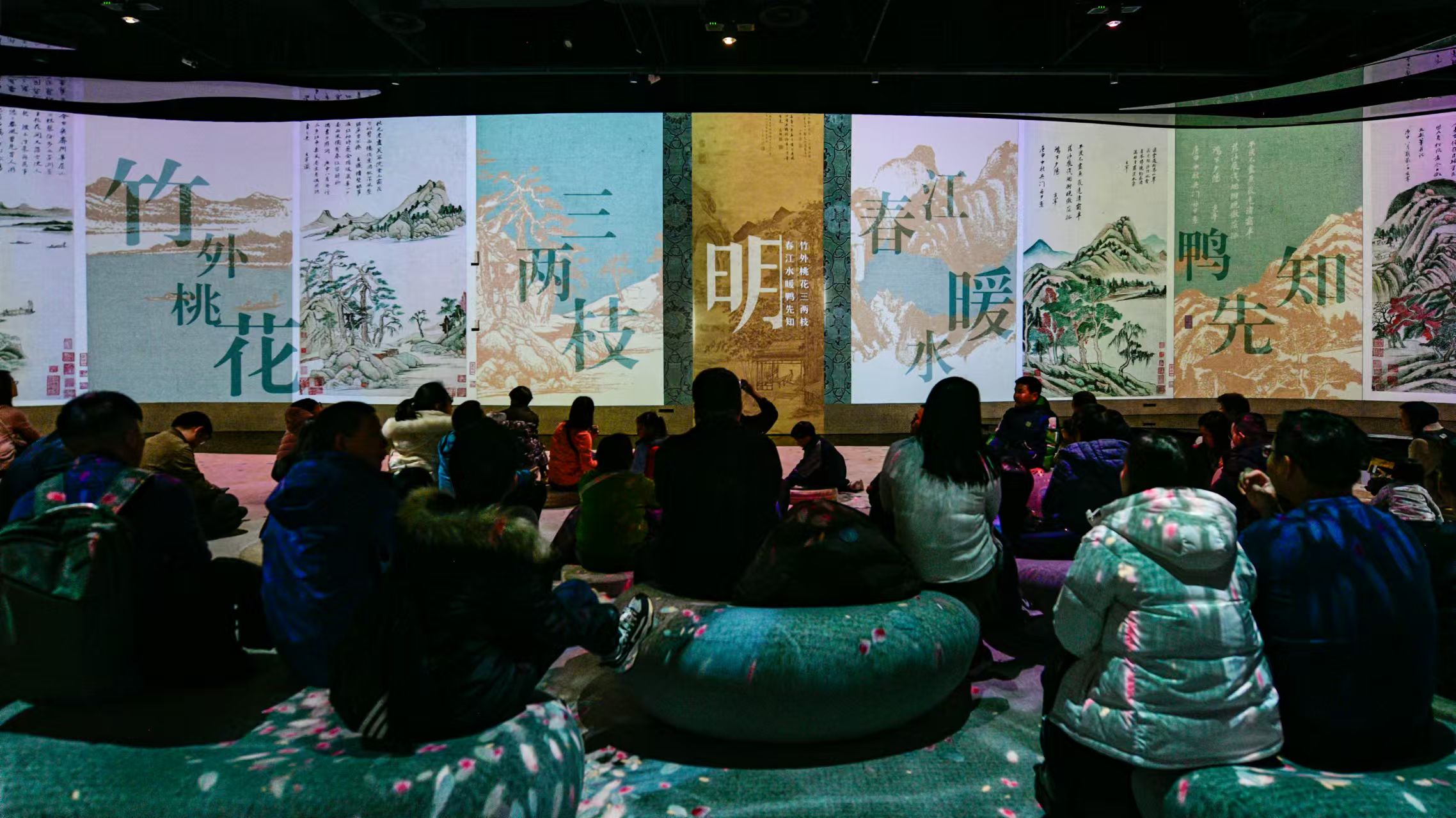 在无实物展品陈列的数字馆“山水江南”展中,数字技术“复活”了中国古代著名的书画家和作品画面,让书画欣赏从平面走向立体,受到全年龄段观众的喜爱。劳动报记者颜筱依 摄