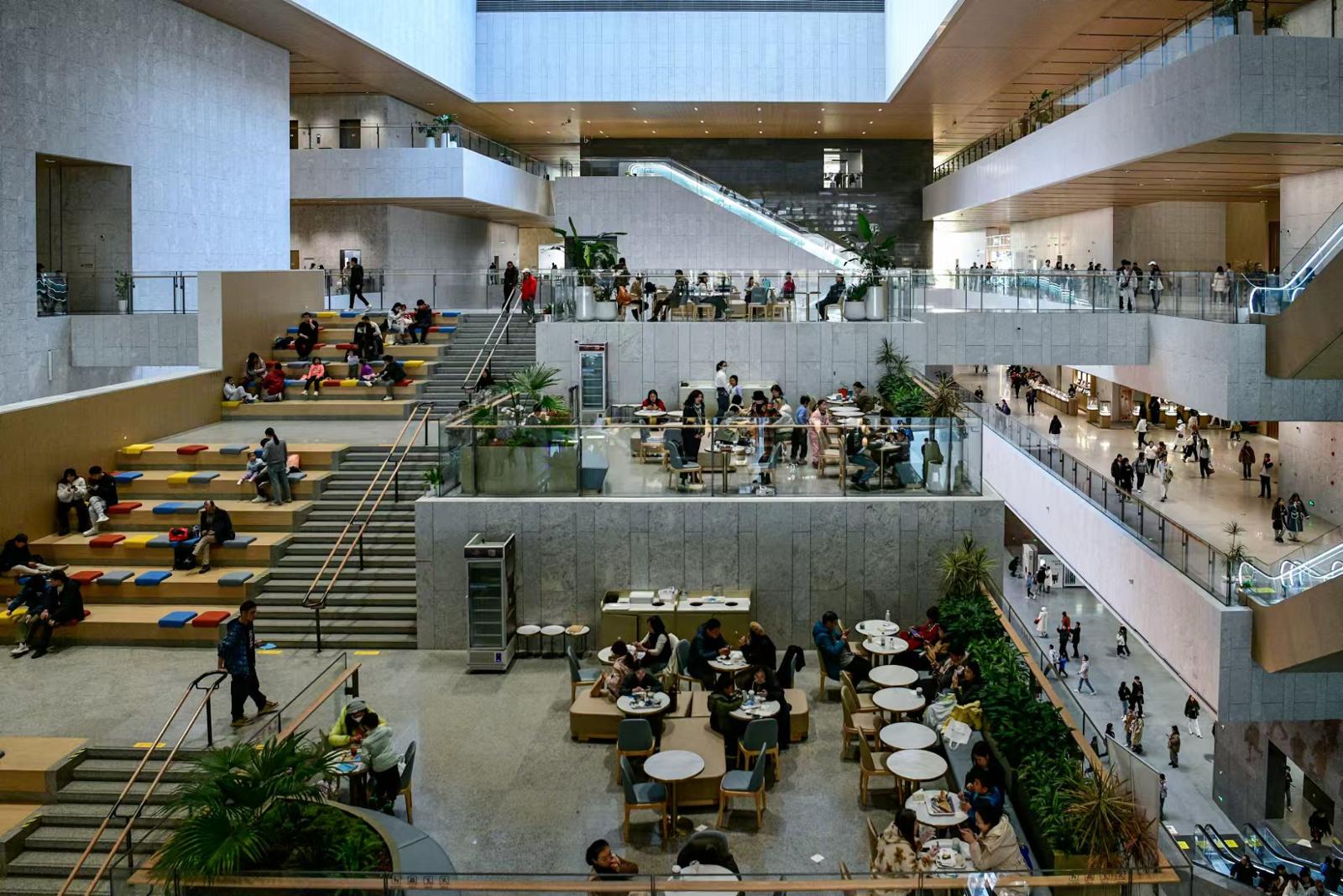 上博东馆公共服务区面积约占整体建筑的三分之一,供观众使用的软椅、长凳、坐垫随处可见。