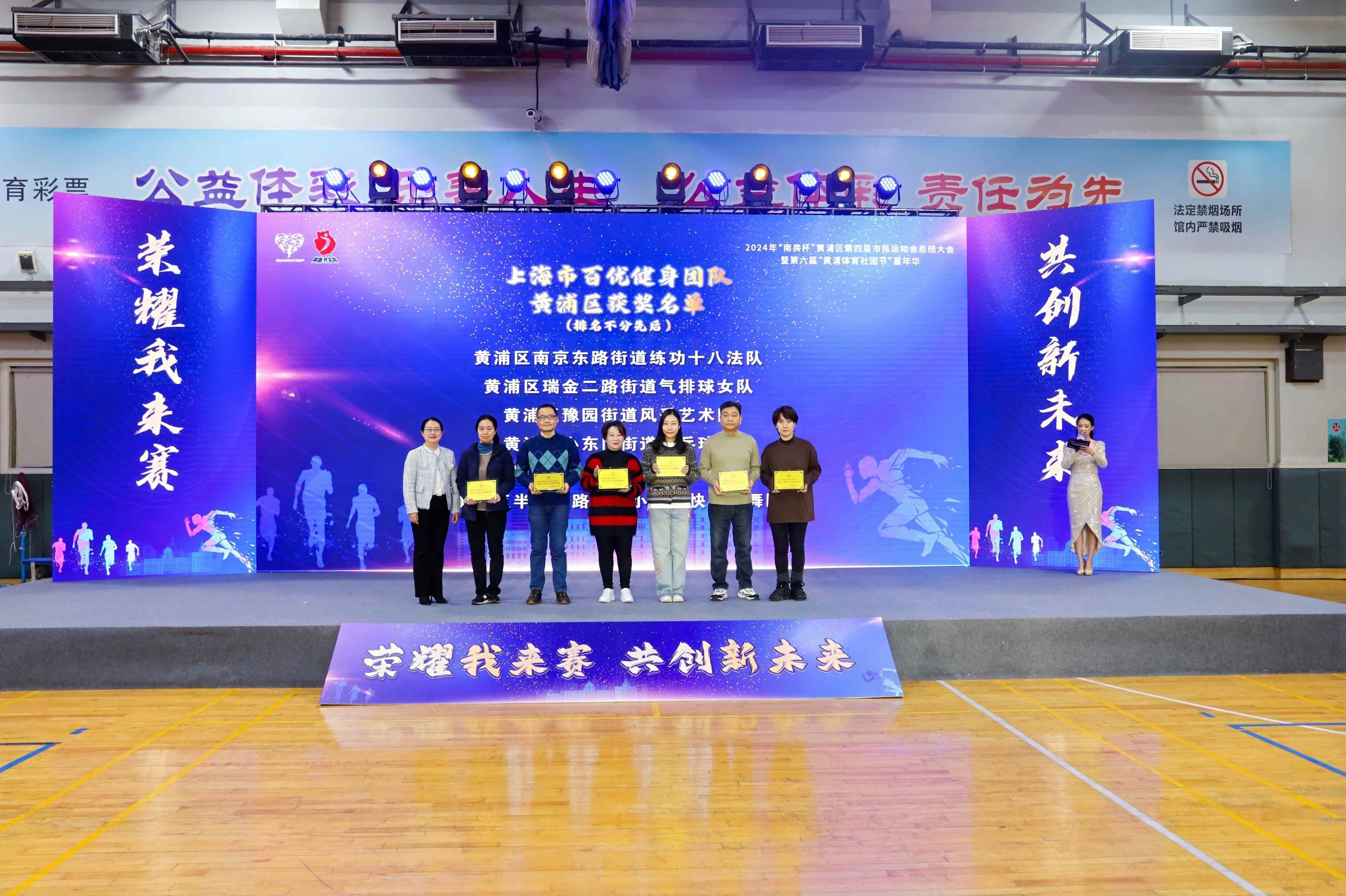 部分获奖单位领奖。黄浦体育图