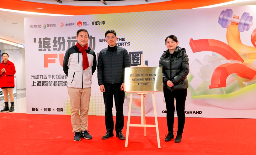 当日,徐汇滨江共建共治联盟发起的“文商旅体展共创平台”为乐动力西岸传媒港都市运动中心授予了“合作场馆”的荣誉称号。徐汇区体育局副局长戴文蔚与徐汇滨江共建共治联盟2024年度轮值主席单位、国际传媒港公司品牌部主任唐玥共同为场馆揭牌。