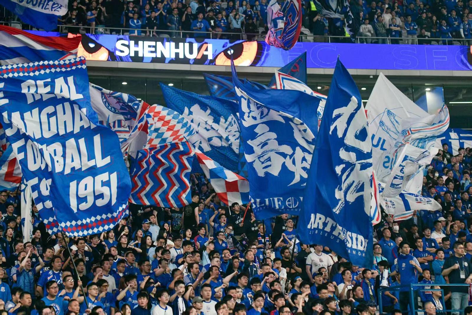 近4万球迷走进上海体育场观赛。颜筱依 摄影