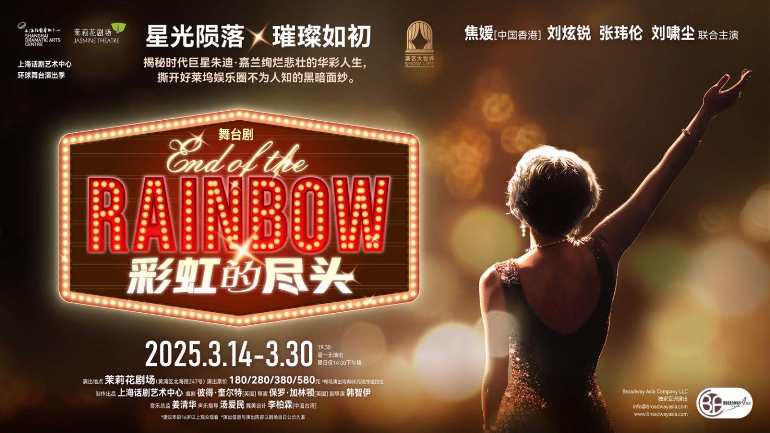 由上海话剧艺术中心制作出品,英国导演保罗·加林顿执导,焦媛、刘炫锐等联合主演的传记类舞台剧《彩虹的尽头》,日前亮相上海茉莉花剧场中国首演,再现了好莱坞传奇巨星朱迪·嘉兰绚烂悲壮的华彩人生。