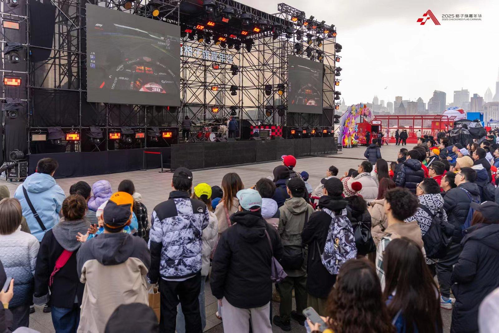 市民游客在主舞台前观看F1-2025赛季揭幕战。主办方供图