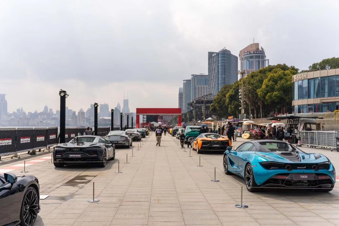 顺着指引往滨江码头望去,法拉利、迈凯伦、阿斯顿·马丁、梅赛德斯-奔驰四大F1车队品牌旗下的经典车和超级跑车已经齐聚一堂,其中包括迈凯伦车队冠军纪念版涂装的ARTURA混动超跑、上海汽车博物馆馆藏的经典车型阿斯顿·马丁DB4、法拉利458中国龙限量版等珍稀车型,让车迷们大饱眼福。