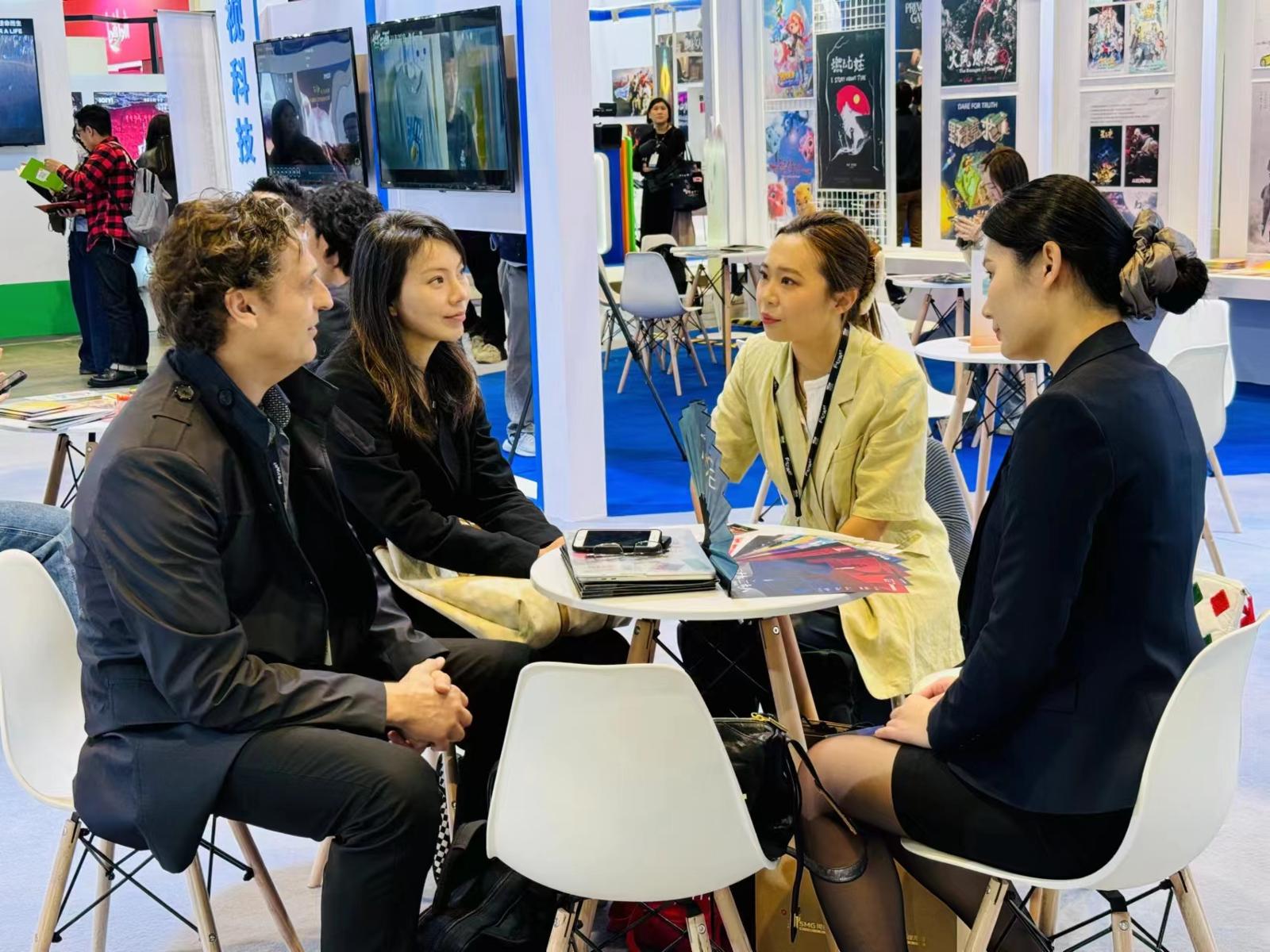 2025香港国际影视展现场,上海联合展台吸引国际关注。受访者供图