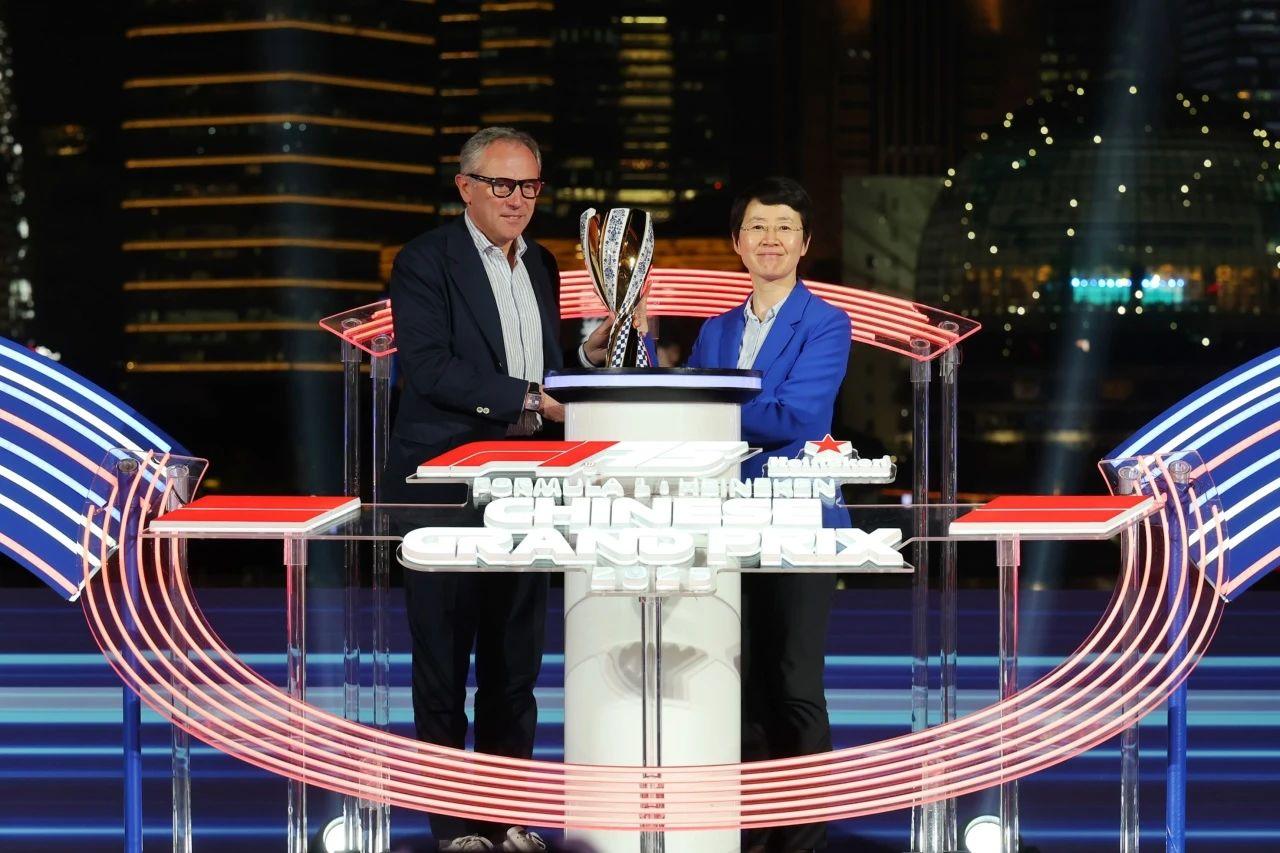 上海市副市长解冬、F1管理公司总裁兼首席执行官斯蒂法诺·多梅尼卡利共同启动2025 FORMULA 1喜力中国大奖赛。主办方图
