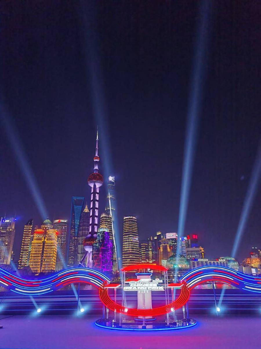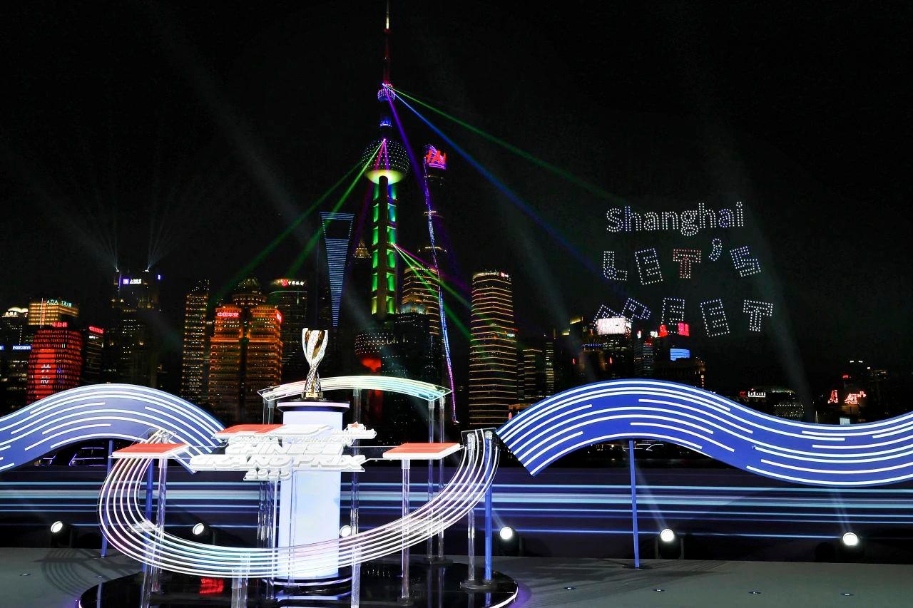 当F1中国大奖赛奖杯融入启动仪式装置那一刻,F1大奖赛75周年、F1赛车、Shanghai LET'S MEET等图案也在黄浦江上空瞬间点亮,与此同时,浦东陆家嘴与万国建筑群在上海爱乐乐团演奏的F1主题曲中也依次亮起,整座城市仿佛被注入了赛车运动的活力,奏响了赛车文化与城市光影的交响乐章。