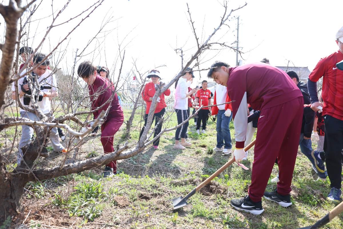 下午,海港球迷们乘车前往崇明岛,参与“海港之林”植树活动。吾米提江、孟敬朝和李智良三位球员化身志愿者为球迷发放植树工具,在专业人员的讲解下,球迷与球员一同了解了植树地块的历史,看望往年种下的树木,感受“海港之林”的成长历程,大家纷纷写下心愿卡,为球队在新赛季的征程送上最真挚的祝福。