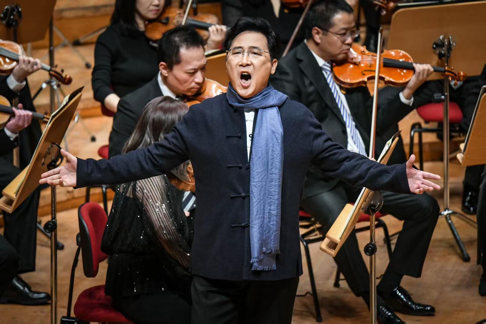 廖昌勇演唱《中国,我可爱的母亲——为混声合唱队与交响乐队而作》 劳动报记者 颜筱依 摄影