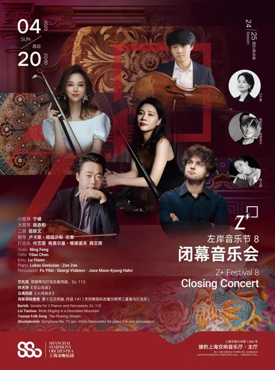 4月20日的闭幕音乐会上,肖邦国际钢琴比赛银奖得主卢卡斯·杰努萨斯将携手上海交响乐团的打击乐演奏家,呈现巴托克的《双钢琴与打击乐奏鸣曲》。小提琴家宁峰、大提琴家陈亦柏、二胡演奏家陆轶文等也将倾情加盟,为观众带来一场东方与西方、民族与世界相融的视听盛宴。