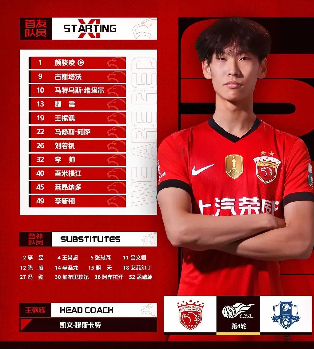 小将李新翔连续首发。海港俱乐部图