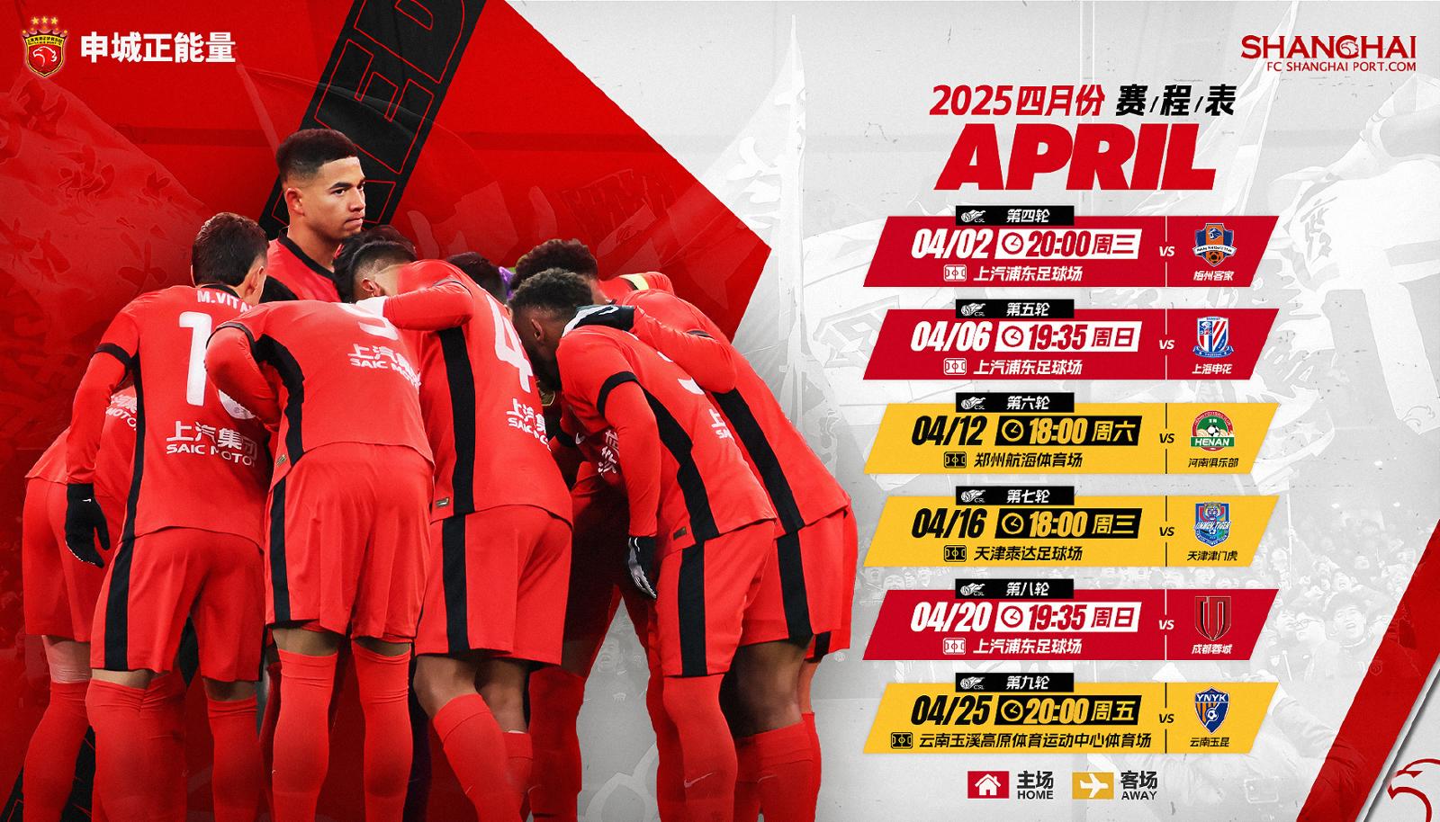海港4月份场场都是硬仗。海港俱乐部图