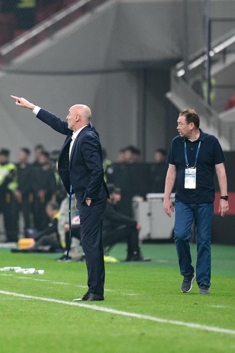 双方主帅场边斗法。劳动报记者颜筱依 摄影