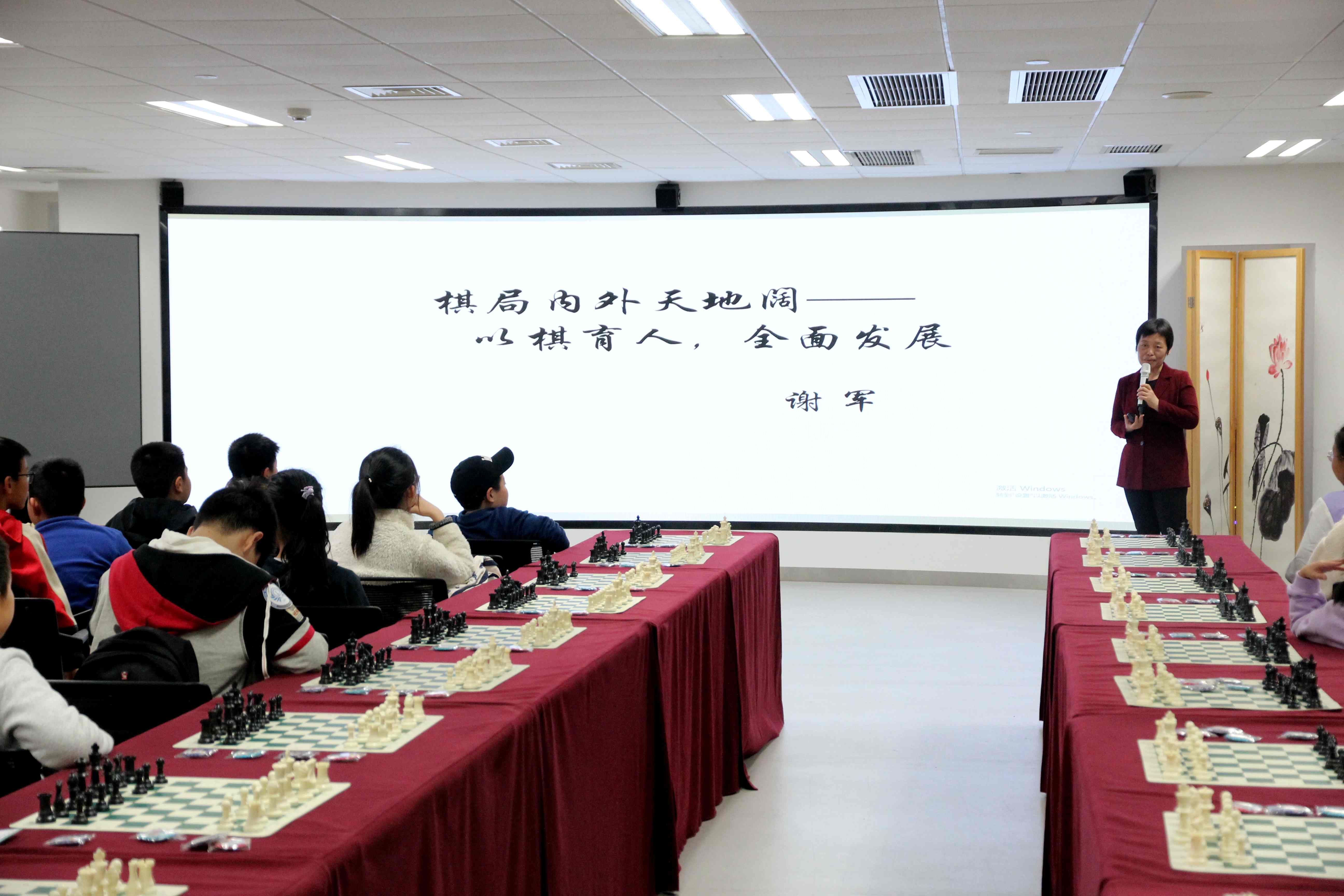 世界冠军谢军与小朋友互动。上海棋院图