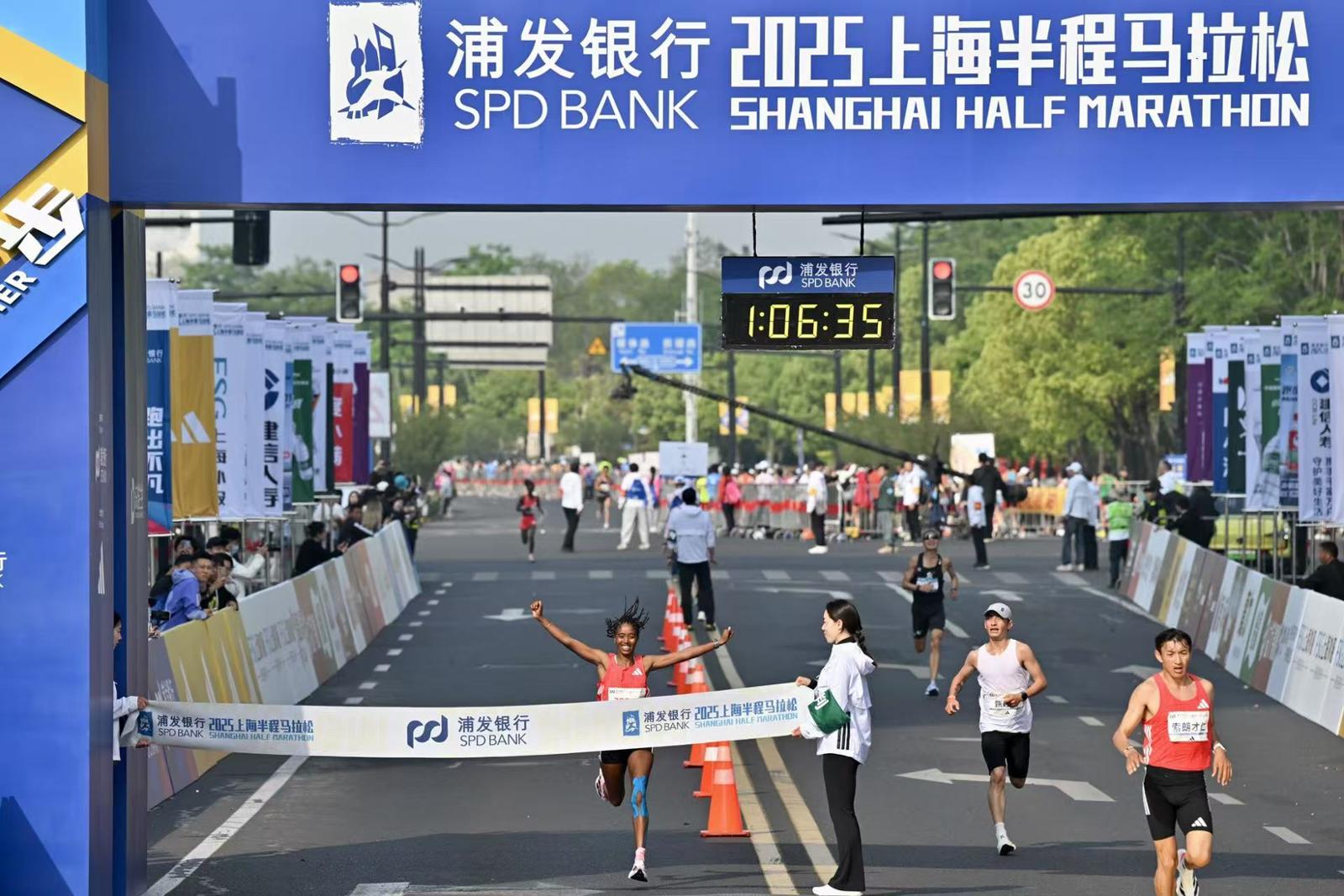 头图为2025上海半马冠军冲线瞬间。劳动报记者贡俊祺 摄影
