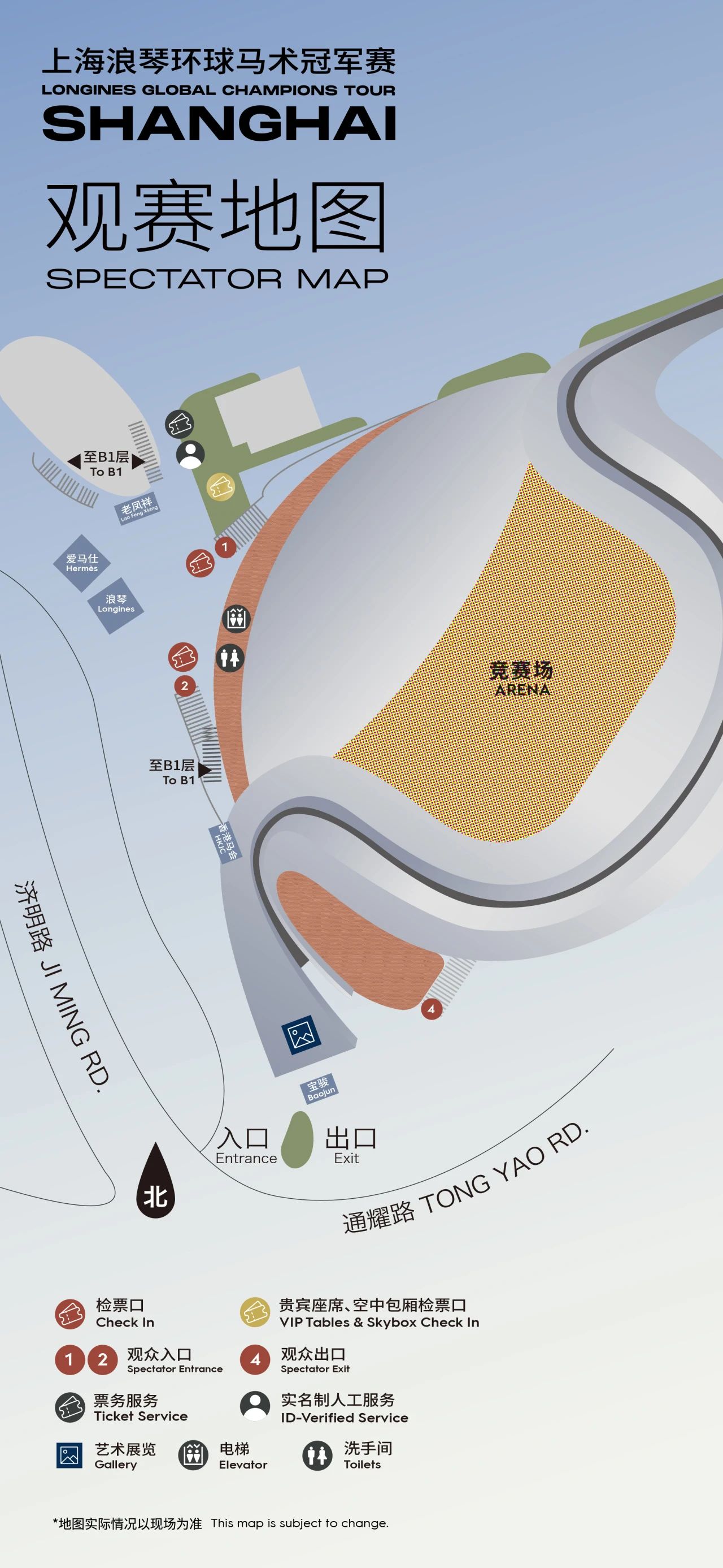 上海久事国际马术中心位于上海市浦东新区通耀路251号,最便捷的出行方式就是坐地铁。从地铁7号线后滩站出站即可快速抵达检票口。强烈建议各位观众不要开车、选择绿色出行,如确有停车需求,周边上海SK大厦、IMP环球都会广场等处可供社会车辆付费停车。