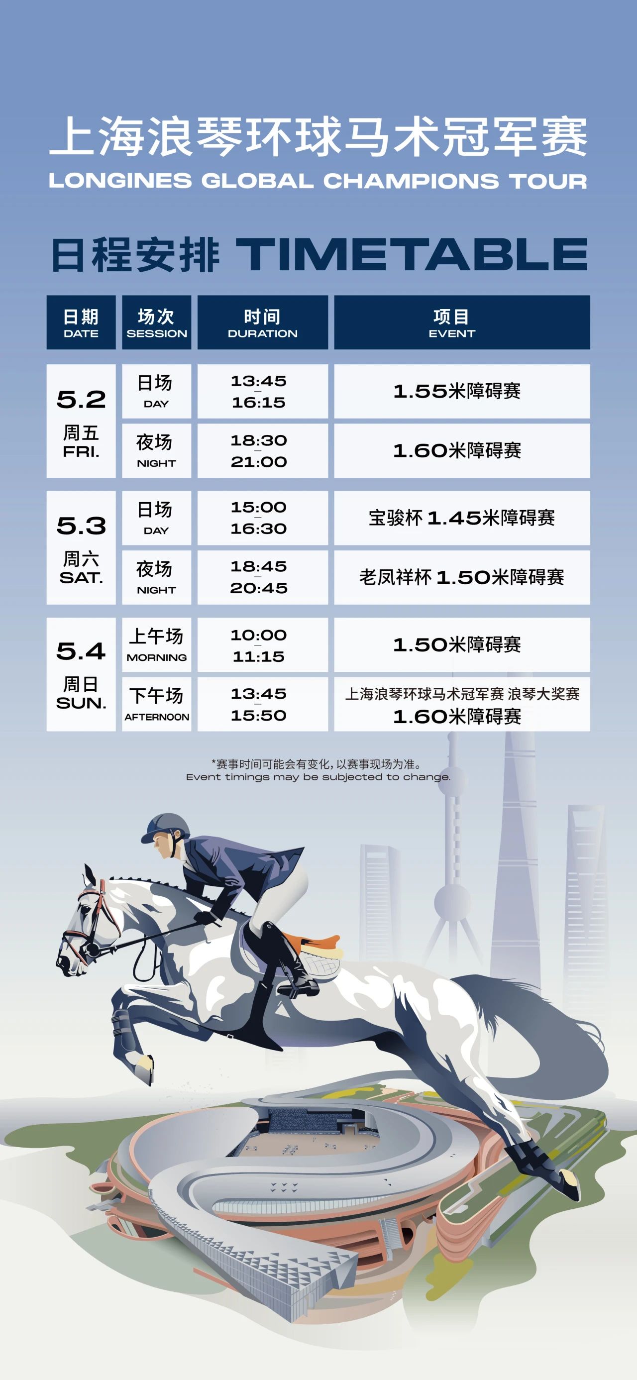 再过两天,2025年上海浪琴环球马术冠军赛就将优雅呈现。五一黄金周里,全球观众便可以在上海饱览顶尖骑手与赛马携手腾跃的英姿,感受“跃上海,越精彩”的马术文化,体验“越抵近,越喜爱”的赛事氛围,亲历融文体商旅展于一体的马术嘉年华。