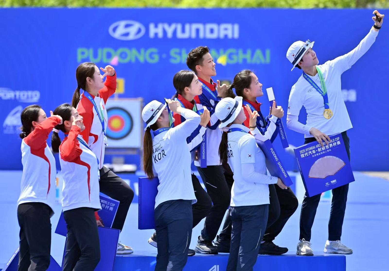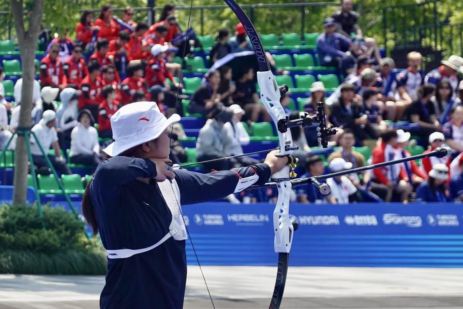 头图为中国队员在射箭世界杯上海站决赛中。劳动报记者贡俊祺 摄影
