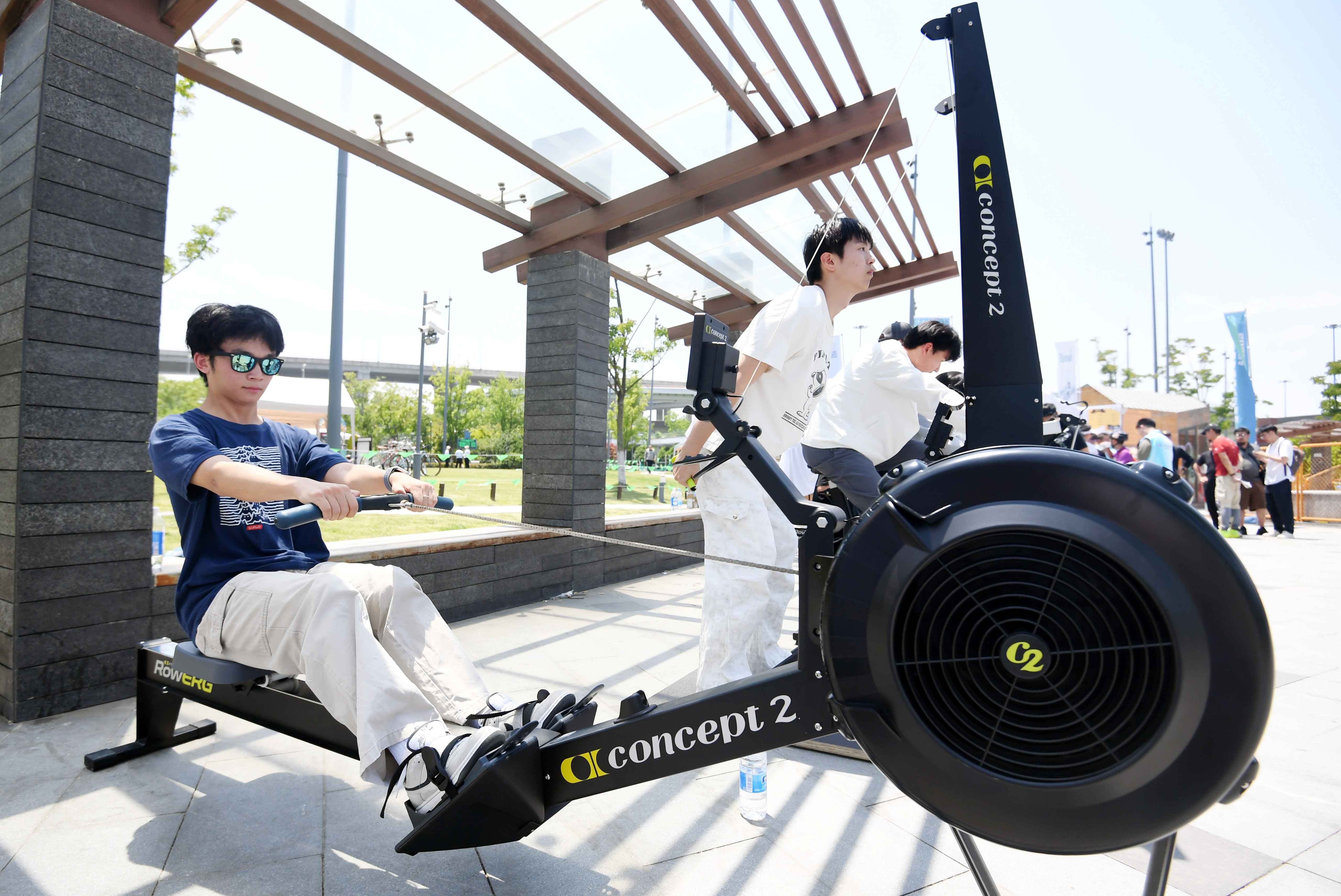 市民在嘉年华区域体验陆地赛艇。主办方图